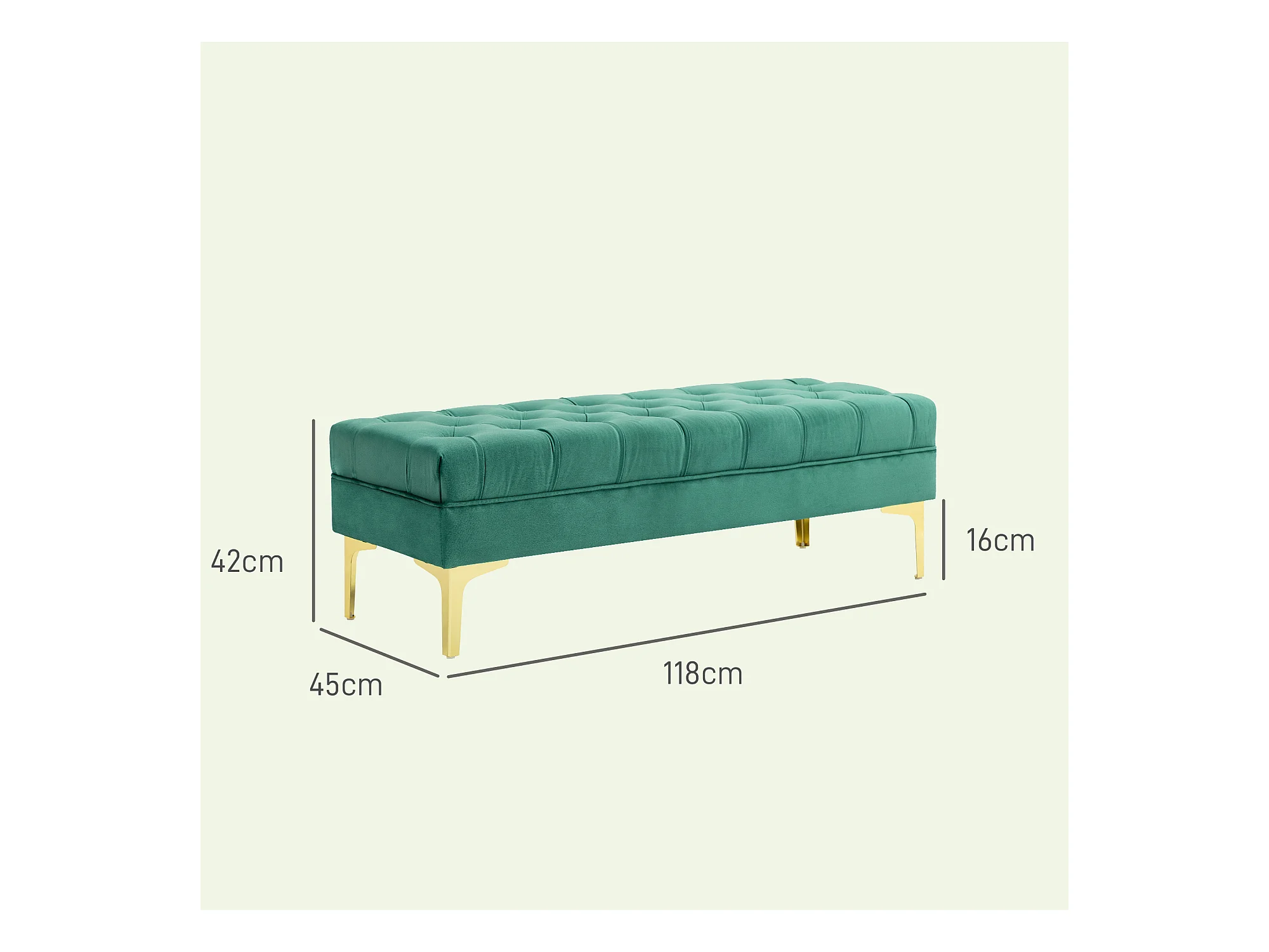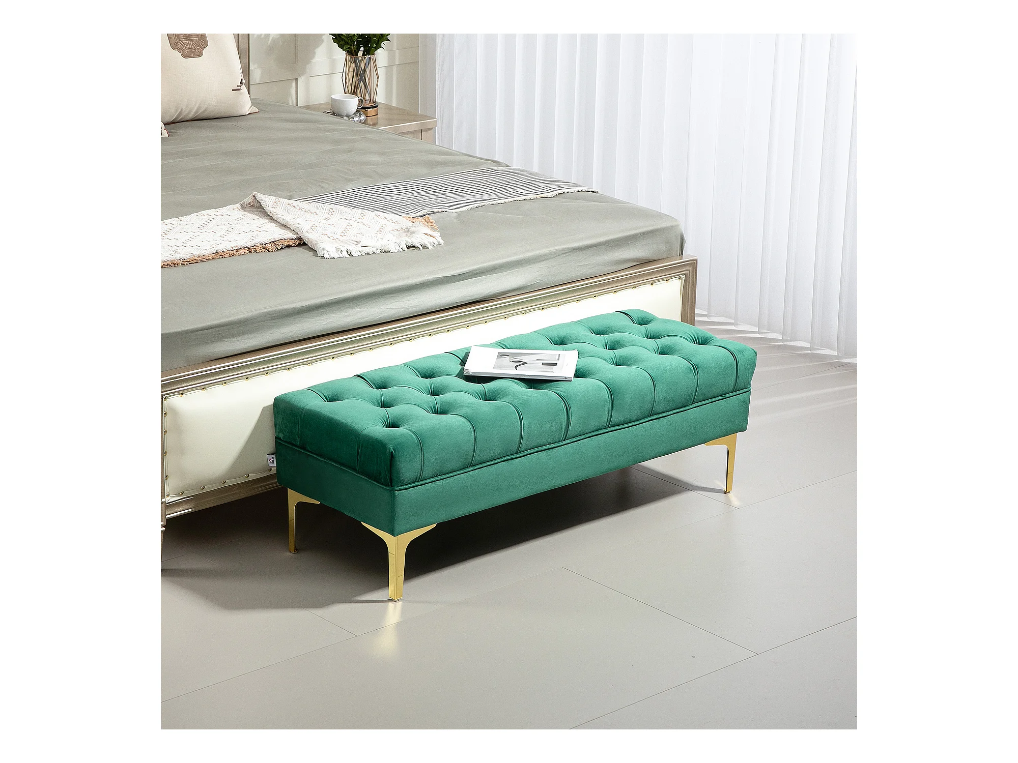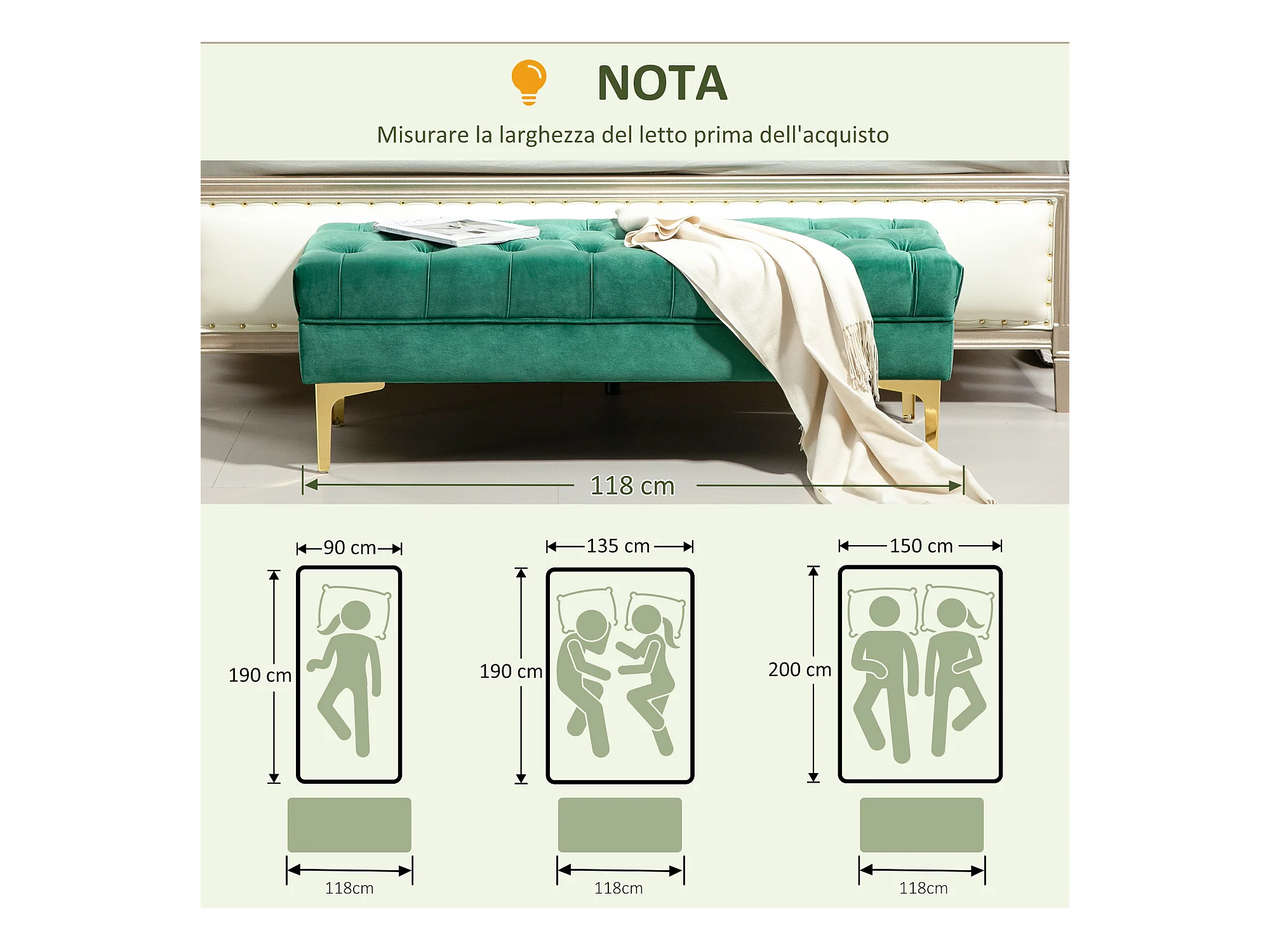 Panca imbottita fondoletto in velluto e acciaio 100x36x45cm verde nero