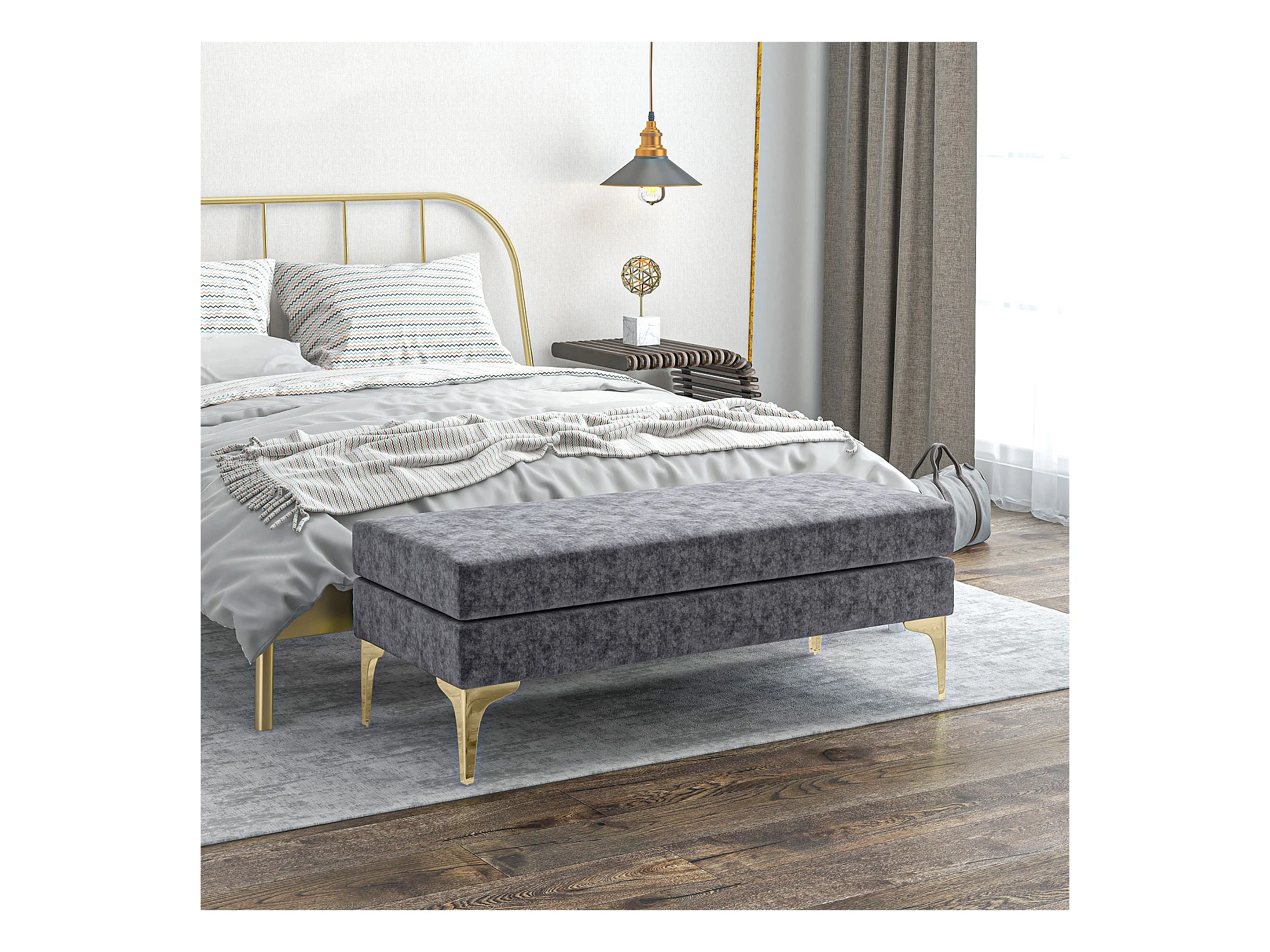 Panca fondo letto in tessuto vellutato a coste 100x36x45 cm grigio