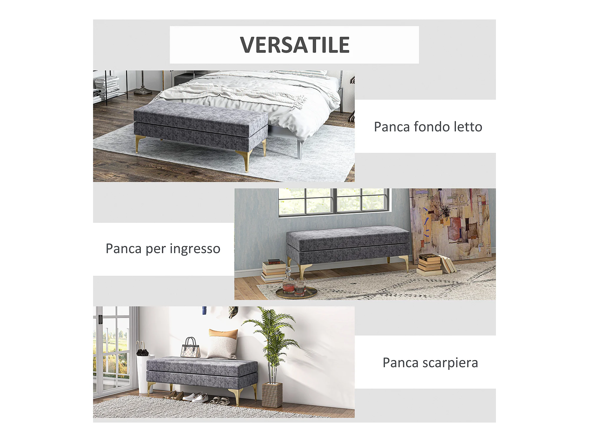 Panca fondo letto vellutata a 2 strati grigio scuro e oro