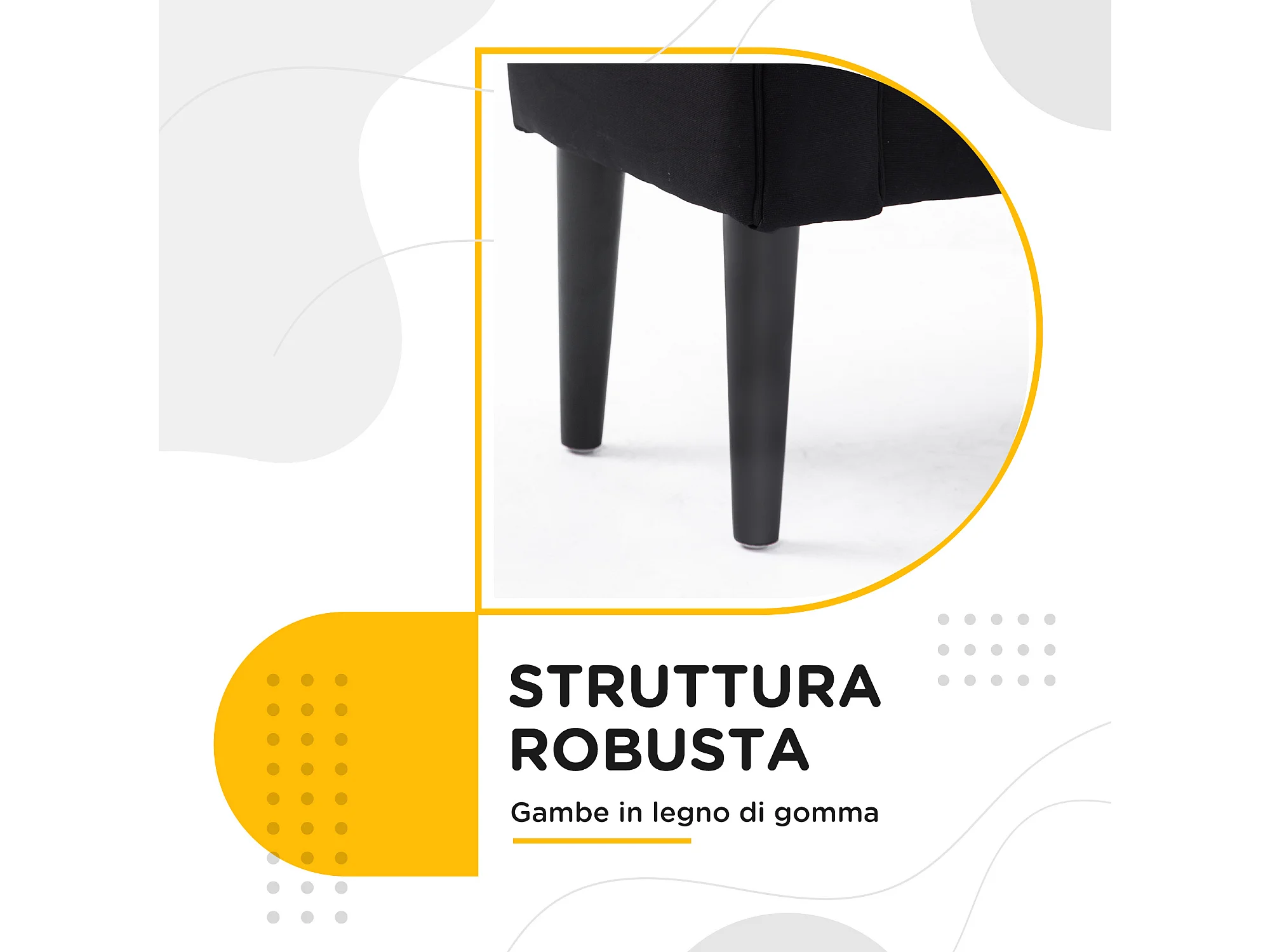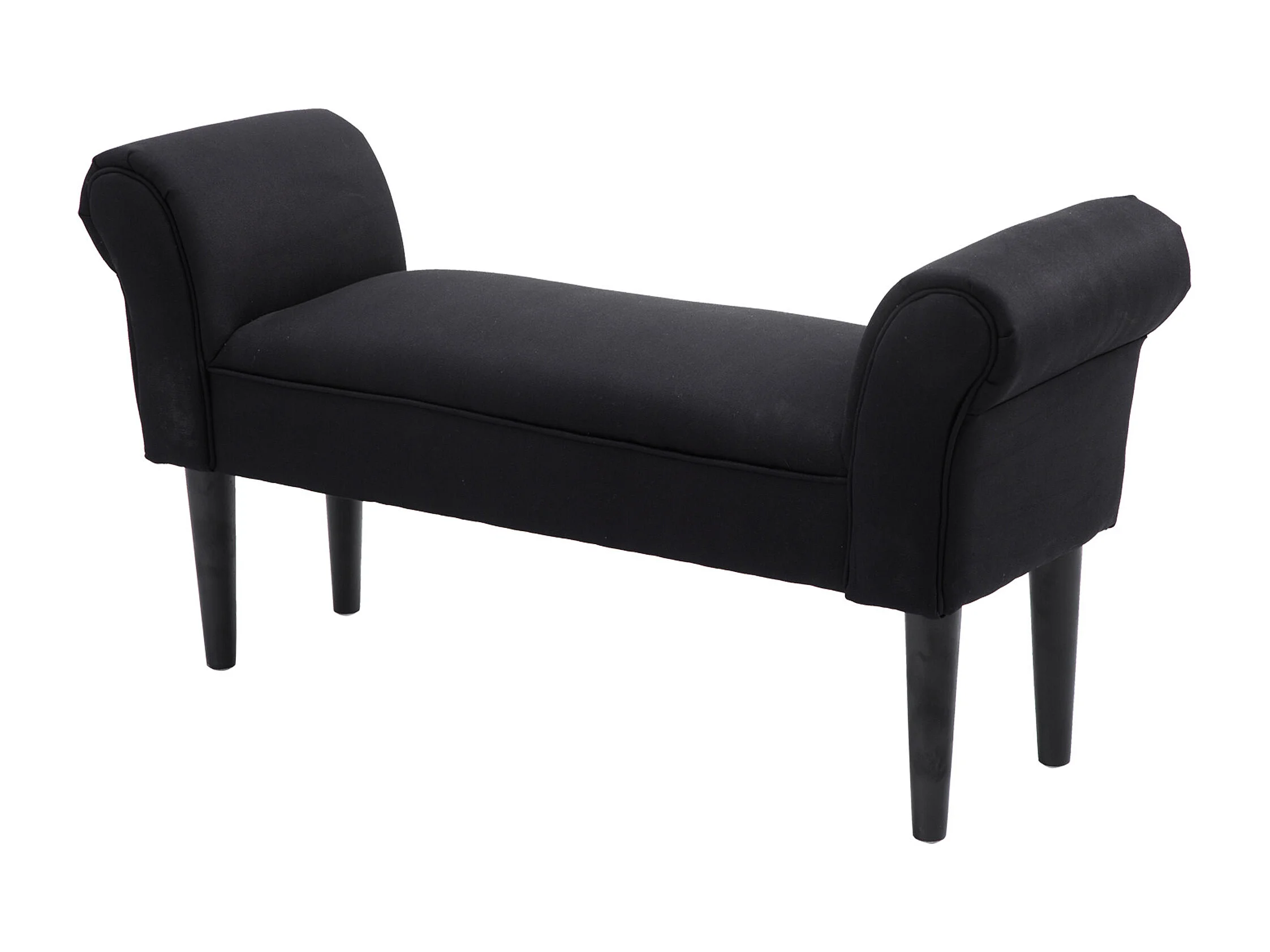 Panca fondoletto imbottita con braccioli arrotolati in tessuto nero