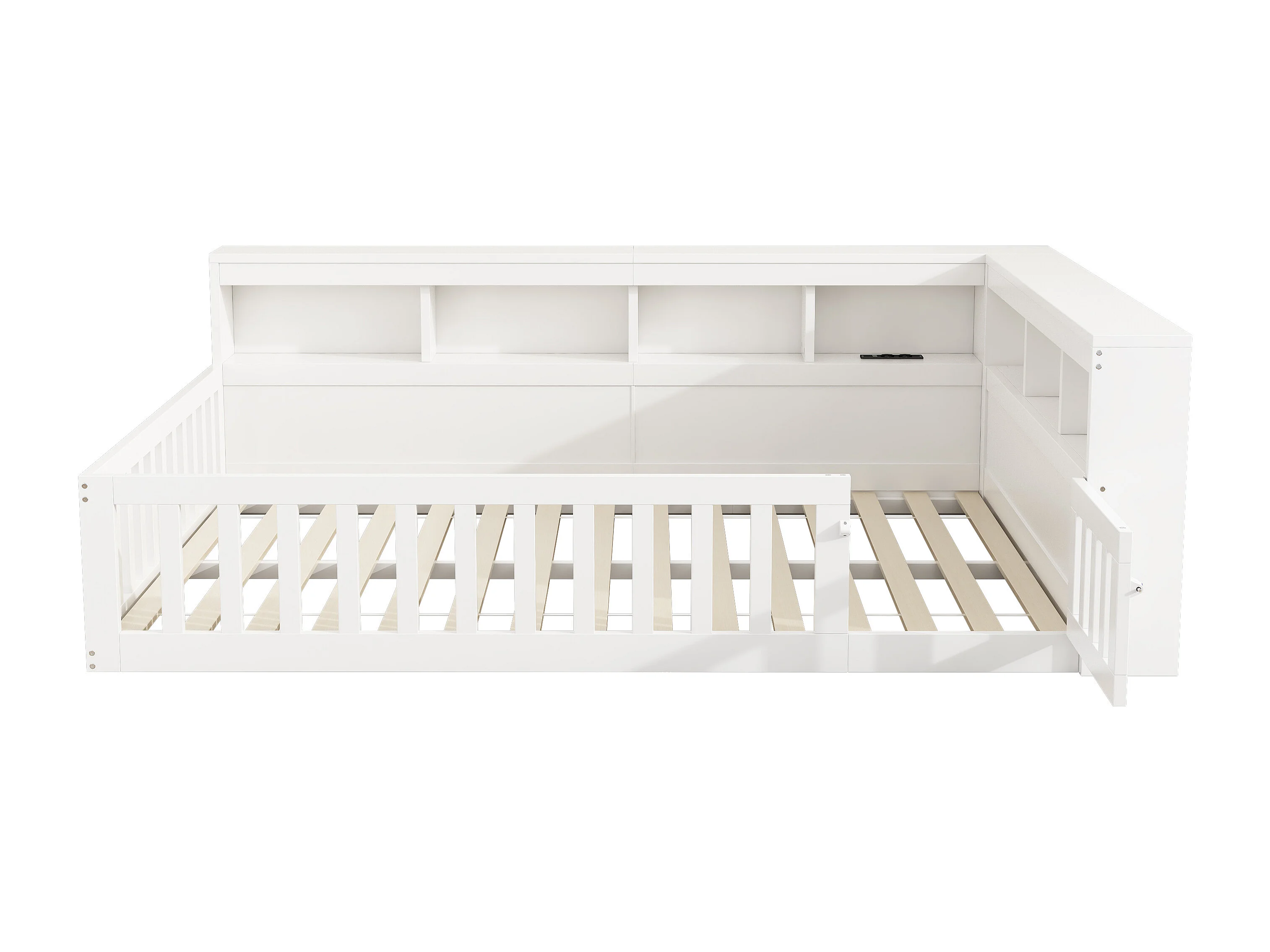 Panca illuminata 140x200 cm in MDF con disposizione laterale, cassetti, sommier, premio e USB, bianca