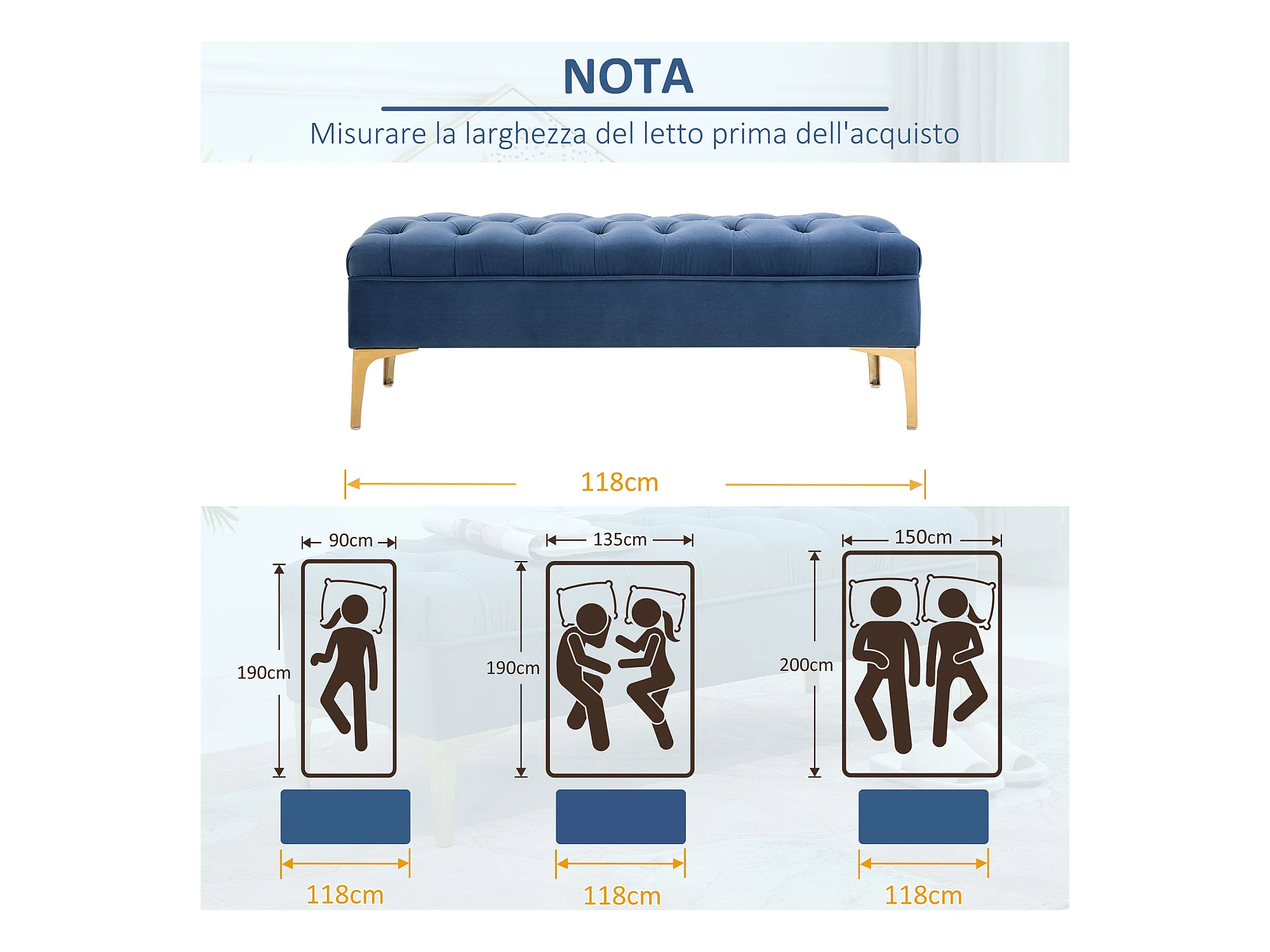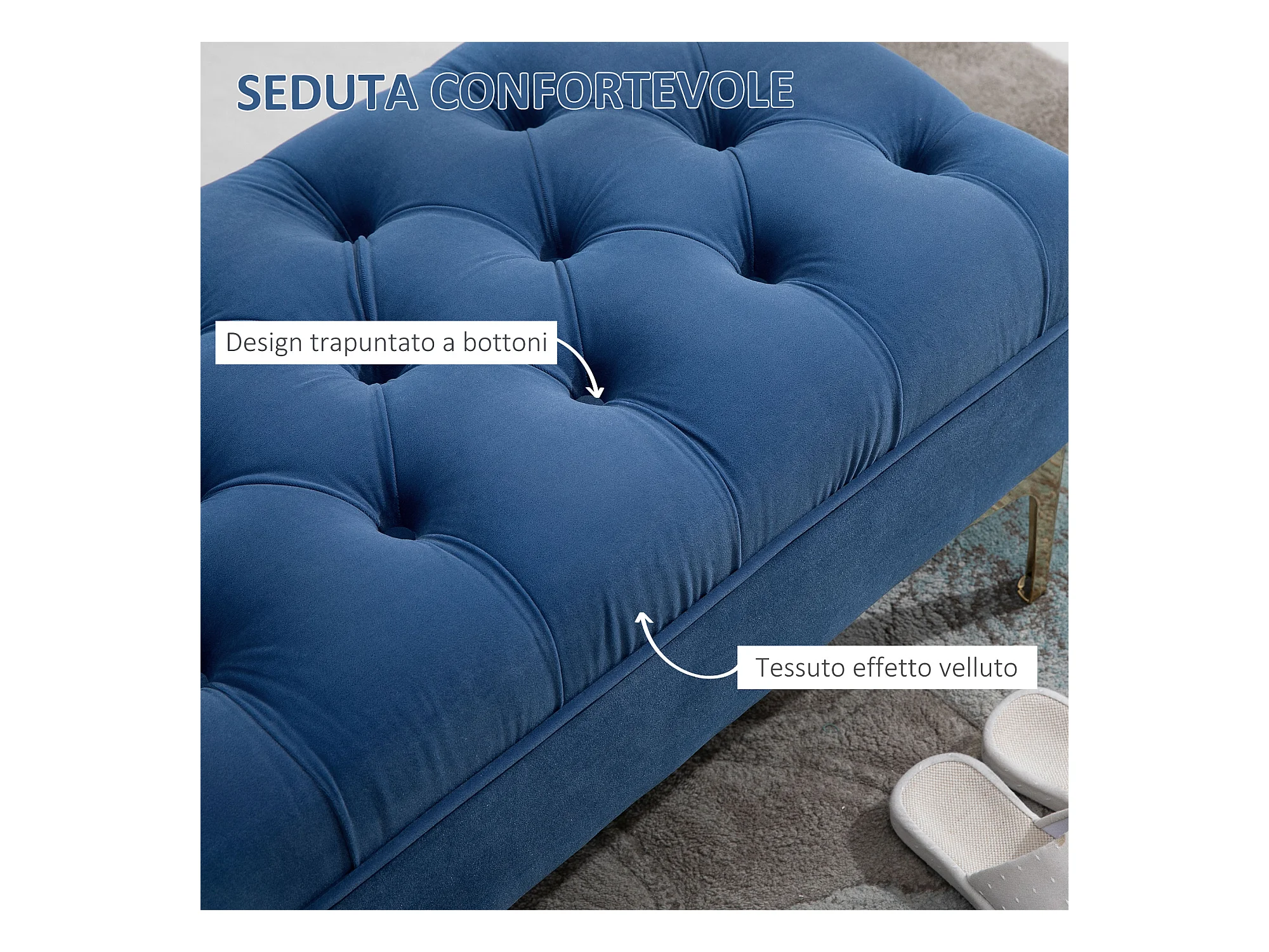 Panca imbottita fondoletto in tessuto vellutato blu