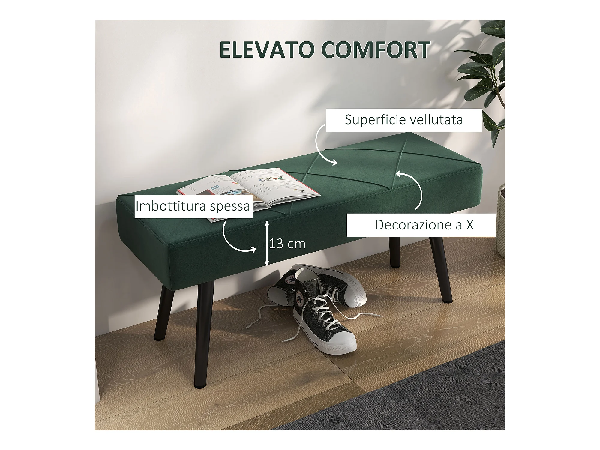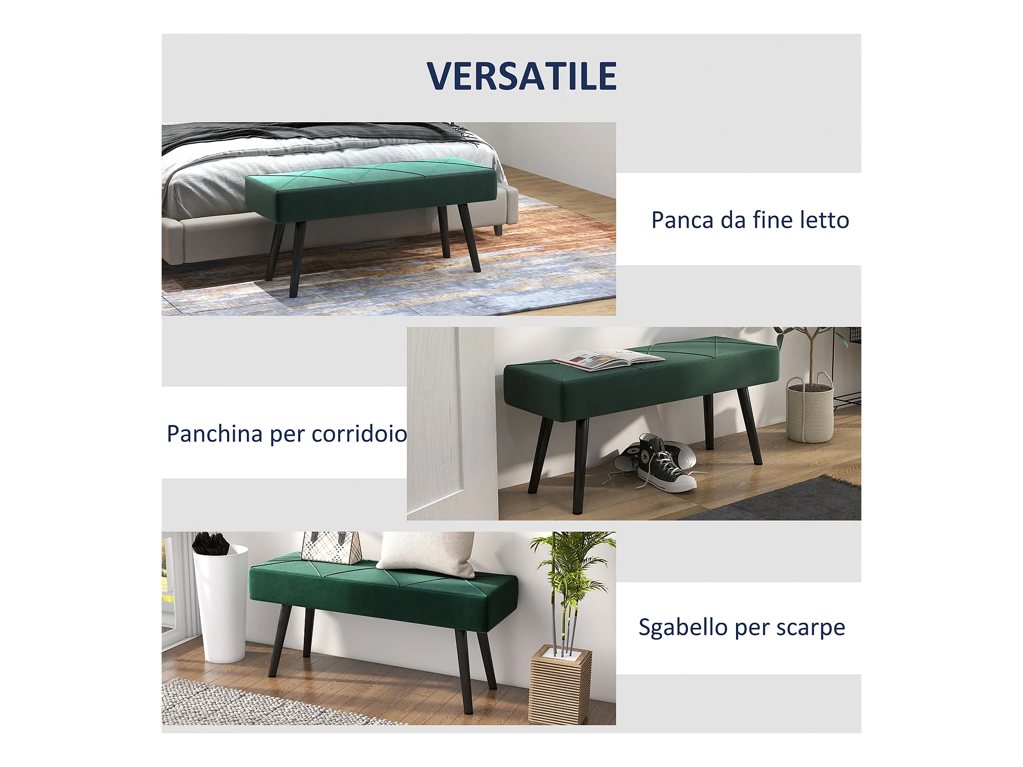 Panca 80 cm in Velluto Verde