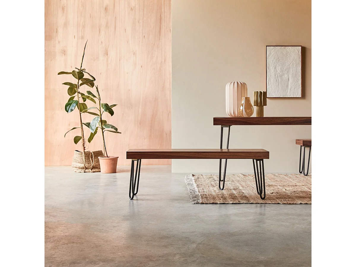 Panca ovale in legno masello in tono noce 120x45cm - OLIVIA - DECOWOOD