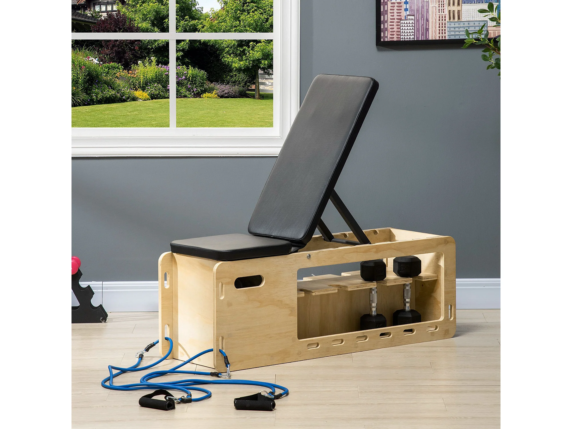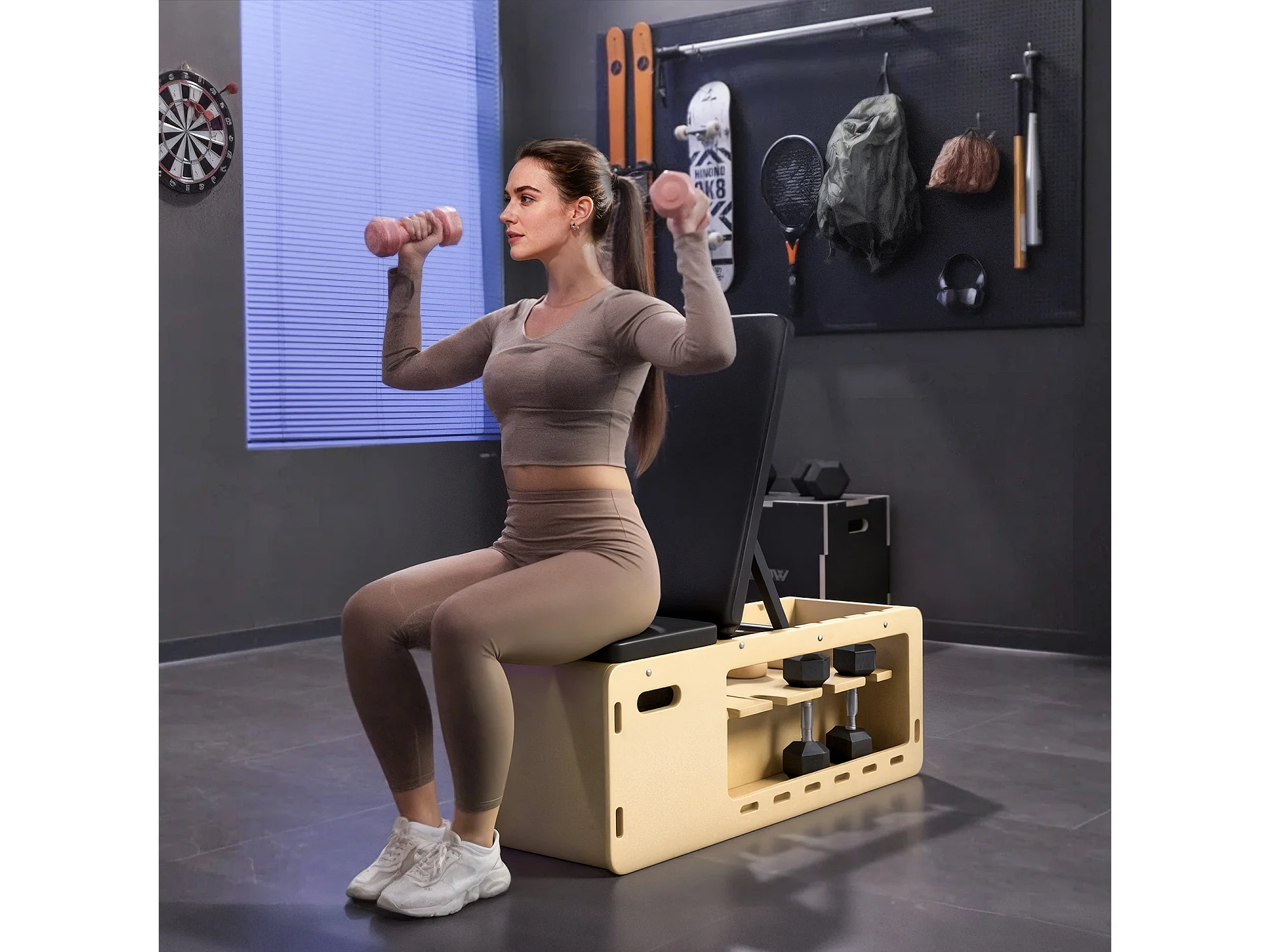 Panca multifunzione inclinabile con porta pesi e contenitore