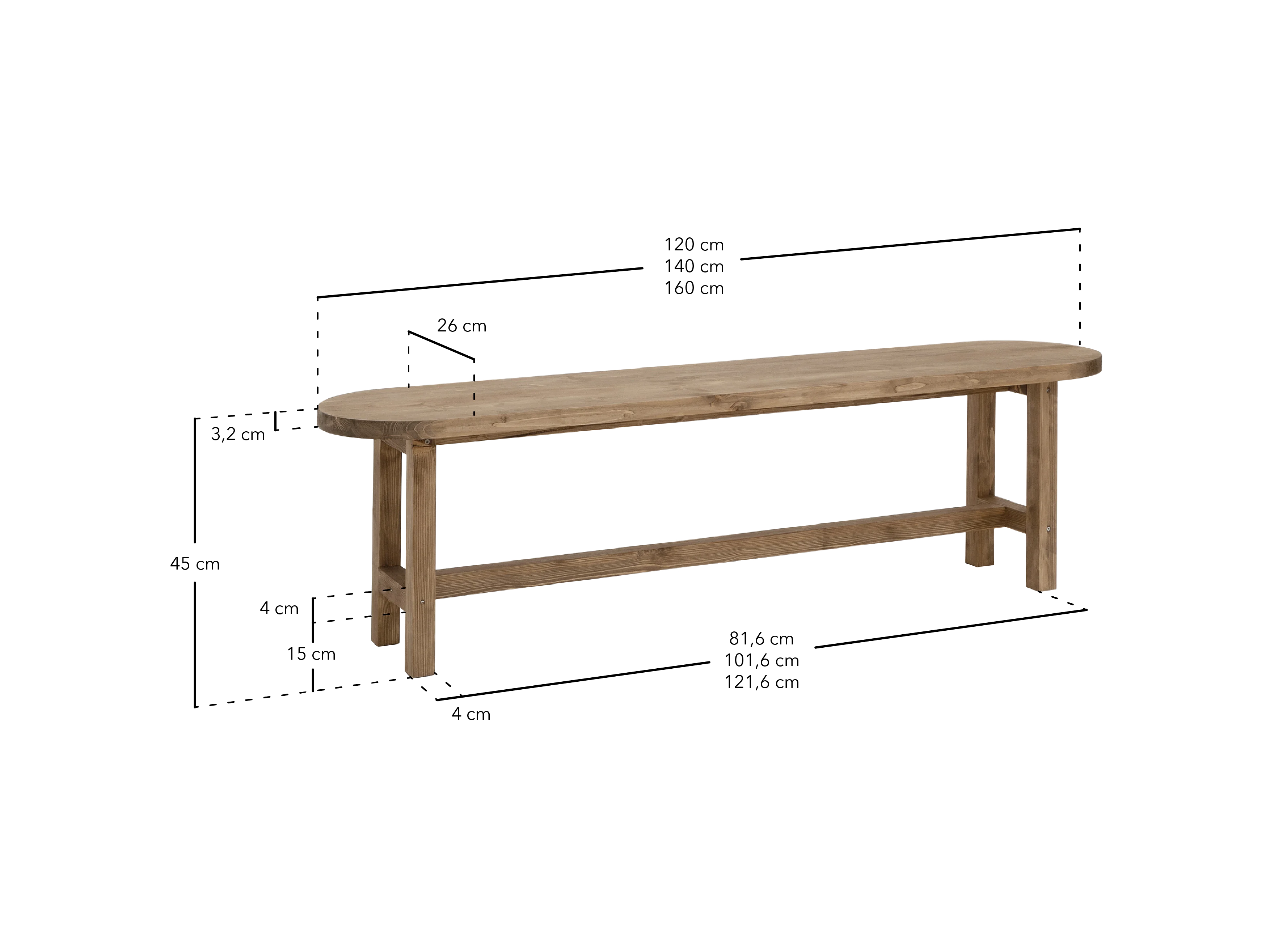 Panca ovale in legno masello in tono noce 120x45cm - OLIVIA - DECOWOOD