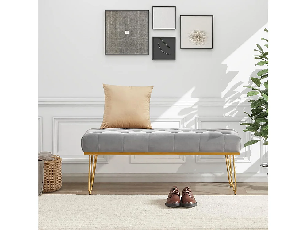 Panca fondoletto imbottita in velluto e acciaio grigio