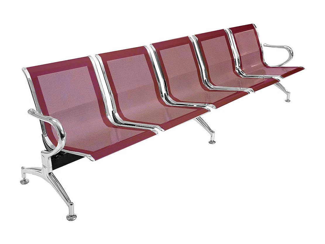 Panca per sala attesa aspetto studio ufficio in acciaio a 5 posti - colore rosso