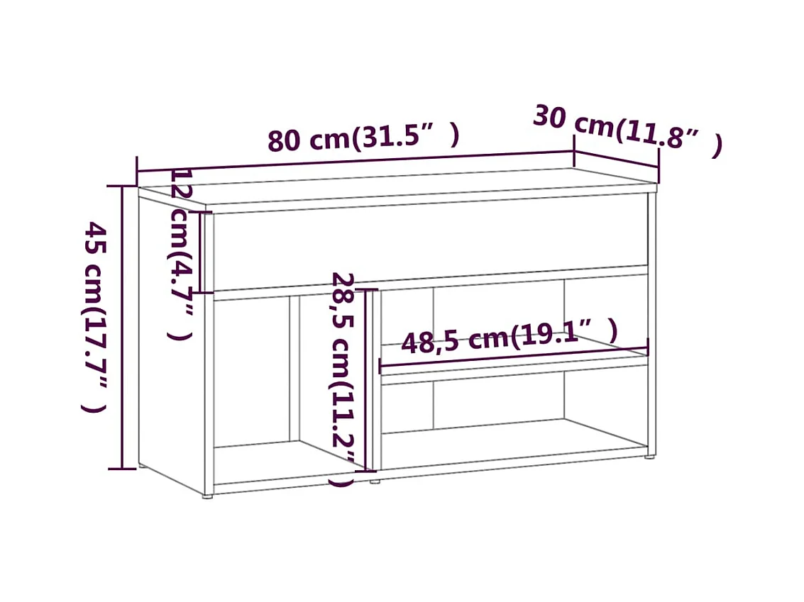 Panca per scarpe 80 x 24 x 45 cm Rovere