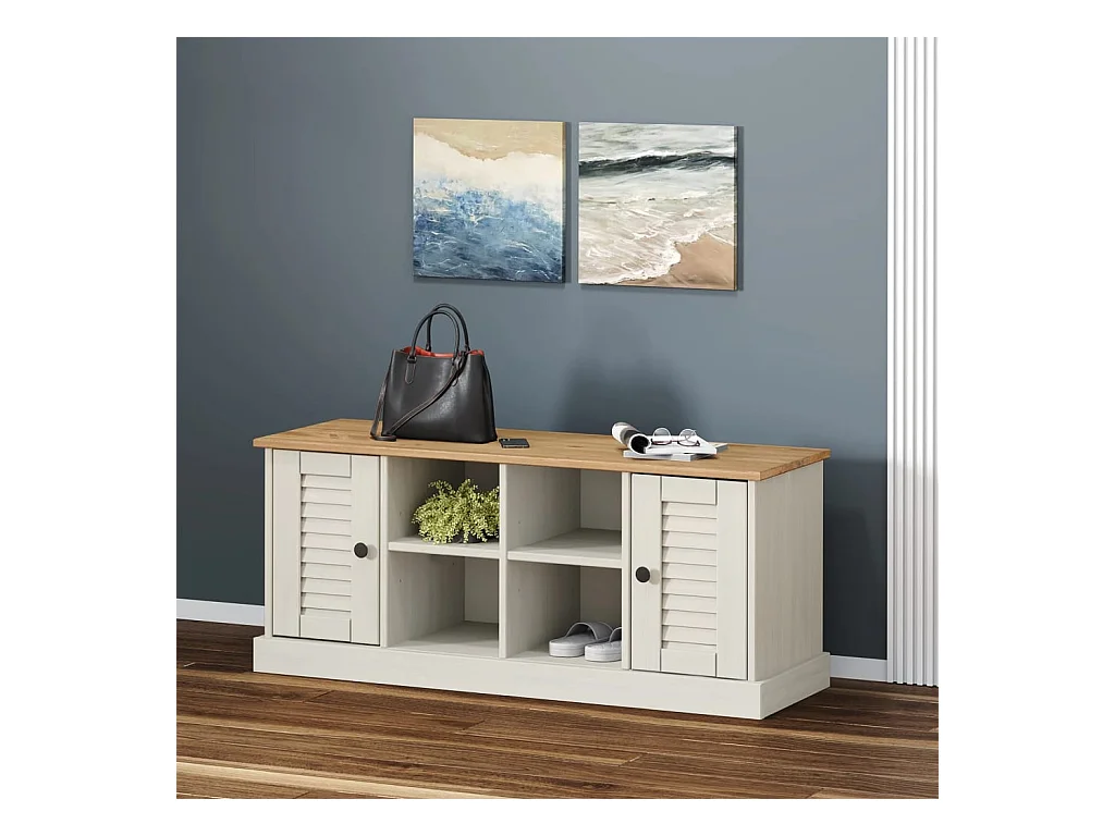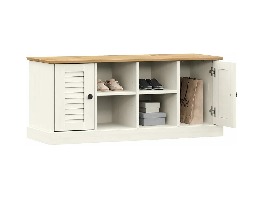 Panca per scarpe VIGO bianca 106x35x45 cm in legno di pino massiccio