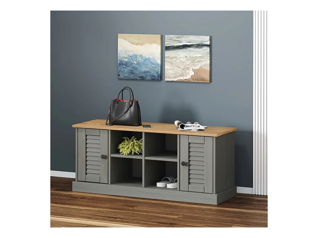 Panca per scarpe VIGO grigia 106x35x45 cm in legno di pino massiccio