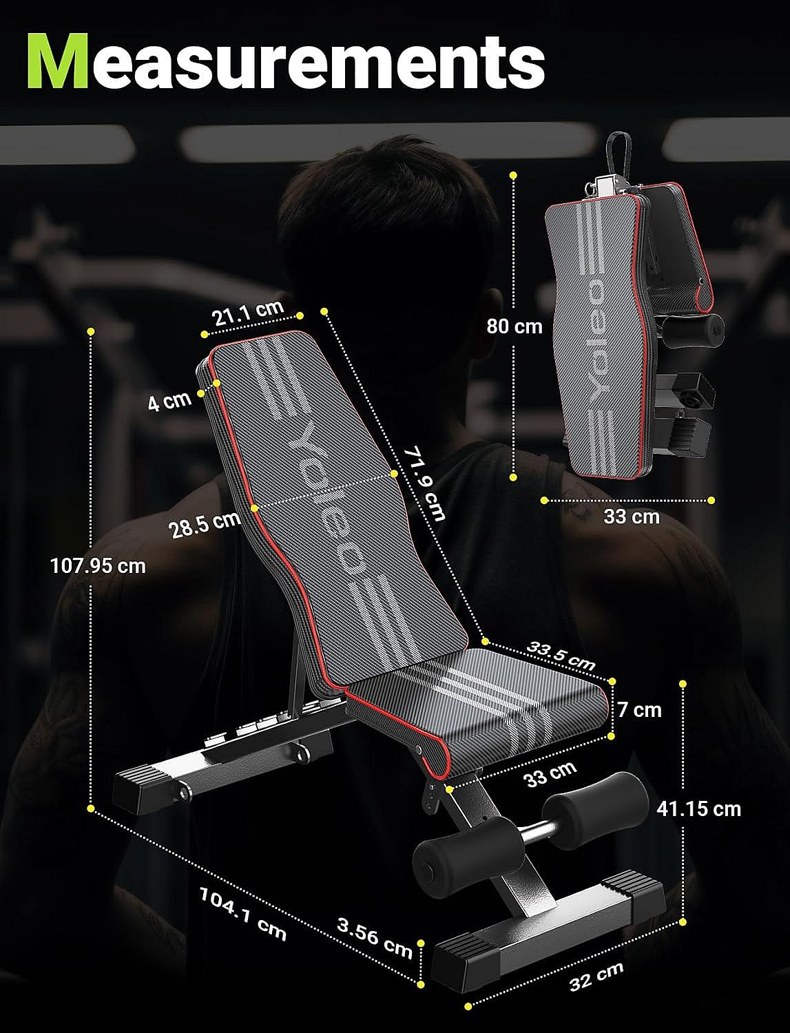 Panca Pesi Pieghevole YOLEO - Panca per Allenamento a Corpo Intero 300kg - Per Allenamento della Forza a Casa con Piegatura e Regolazione Rapide