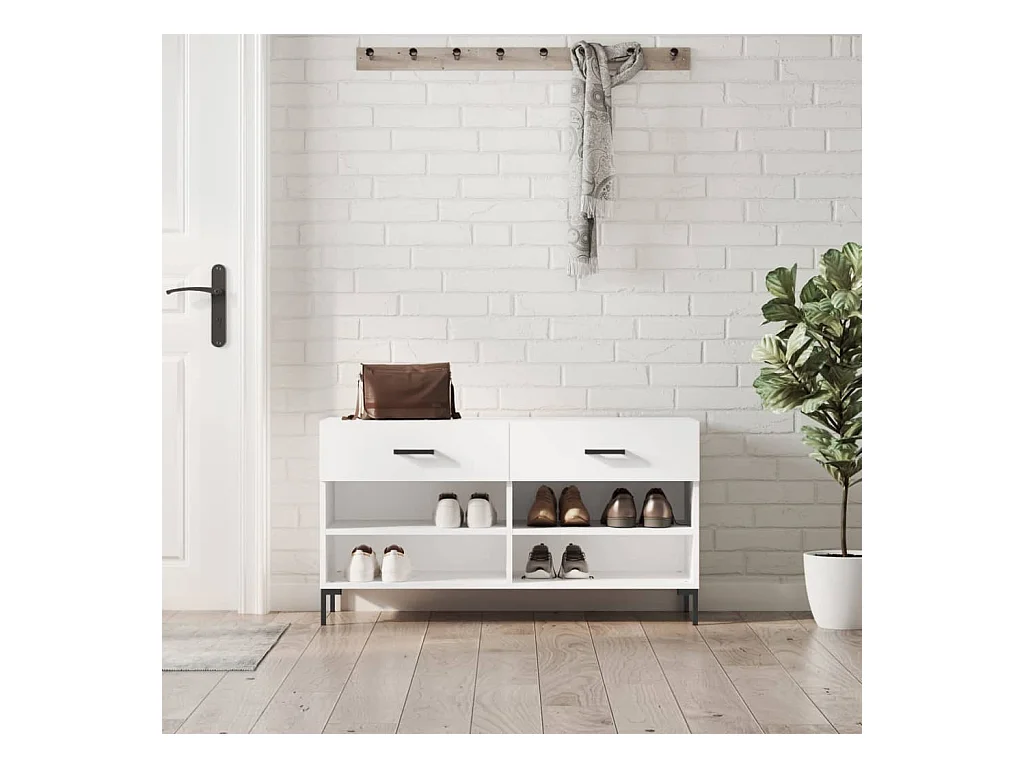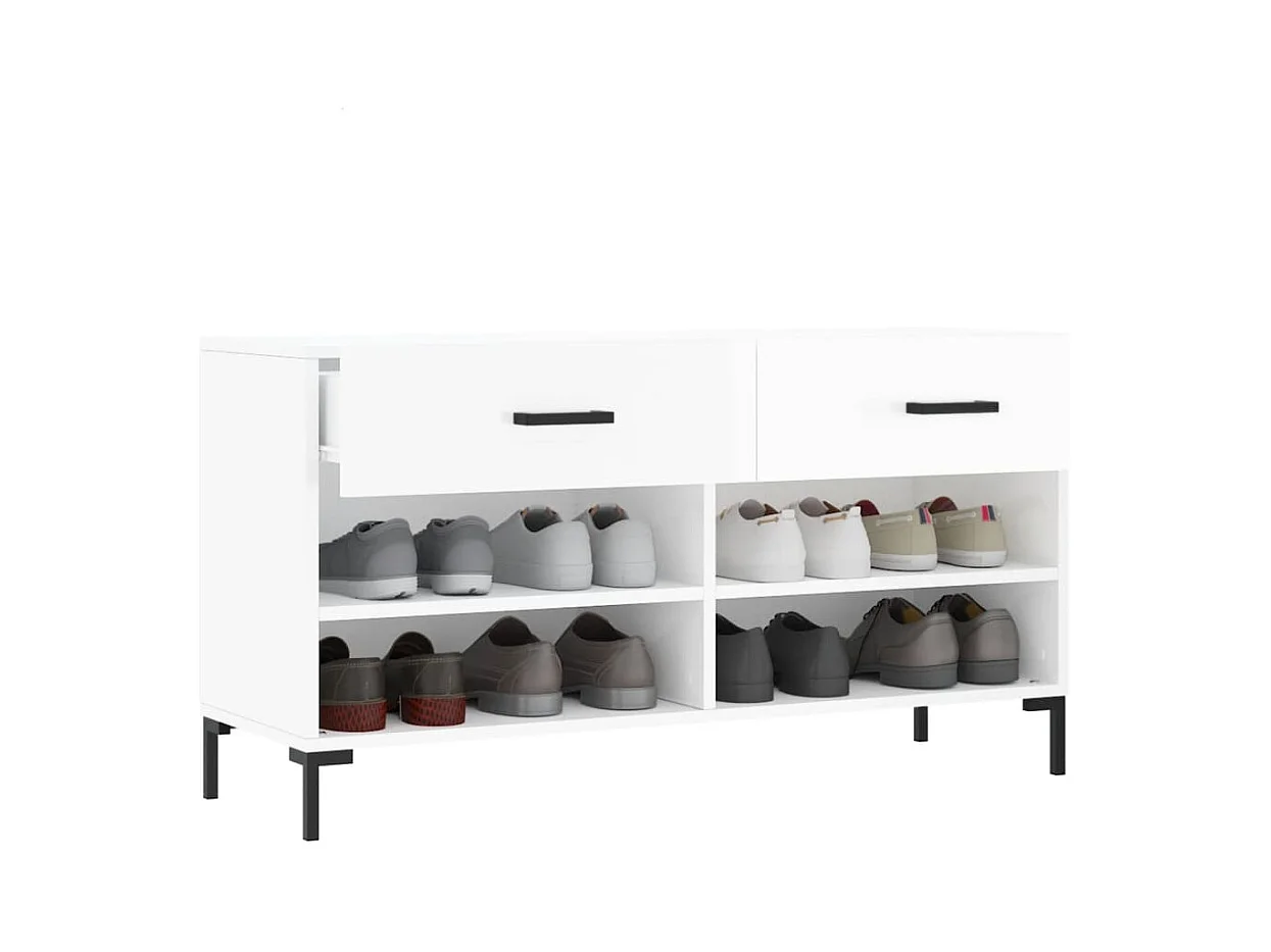 Panca portascarpe bianca lucida 102x35x55 cm in legno ingegnerizzato