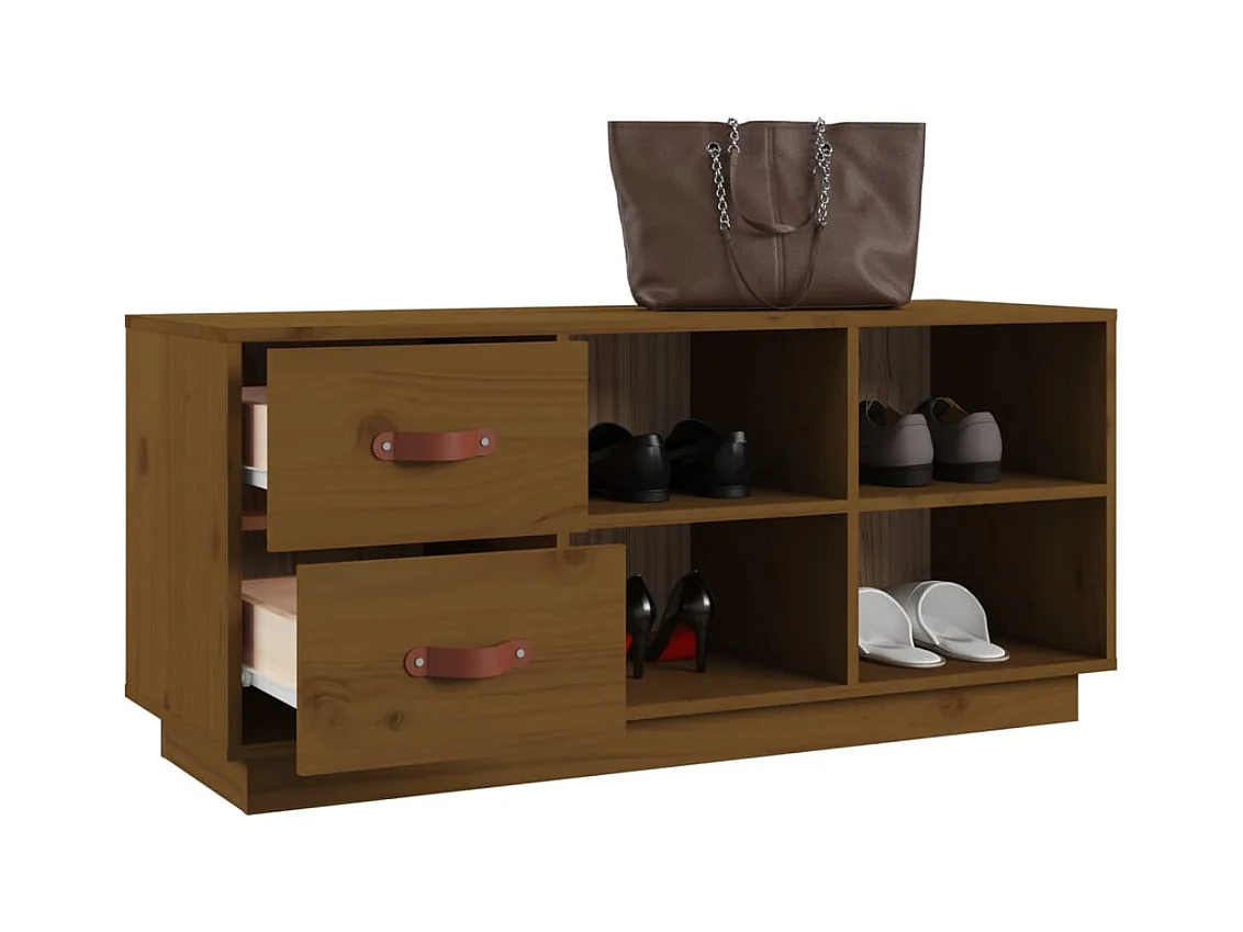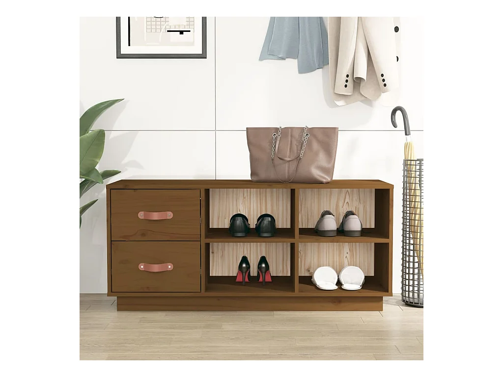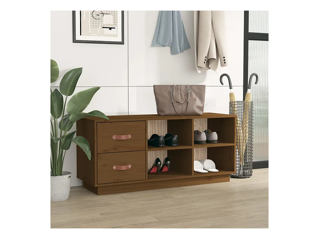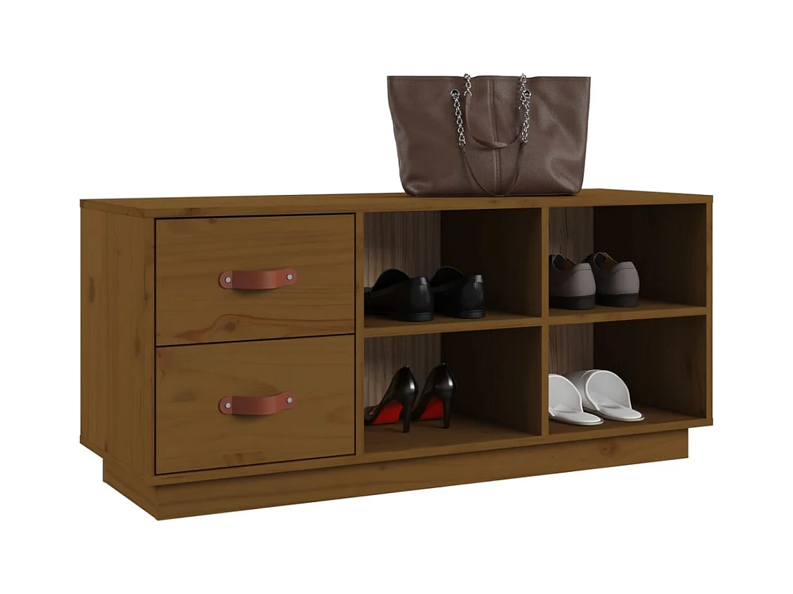 Panca portascarpe color miele 100x34x45 cm in legno massello di pino