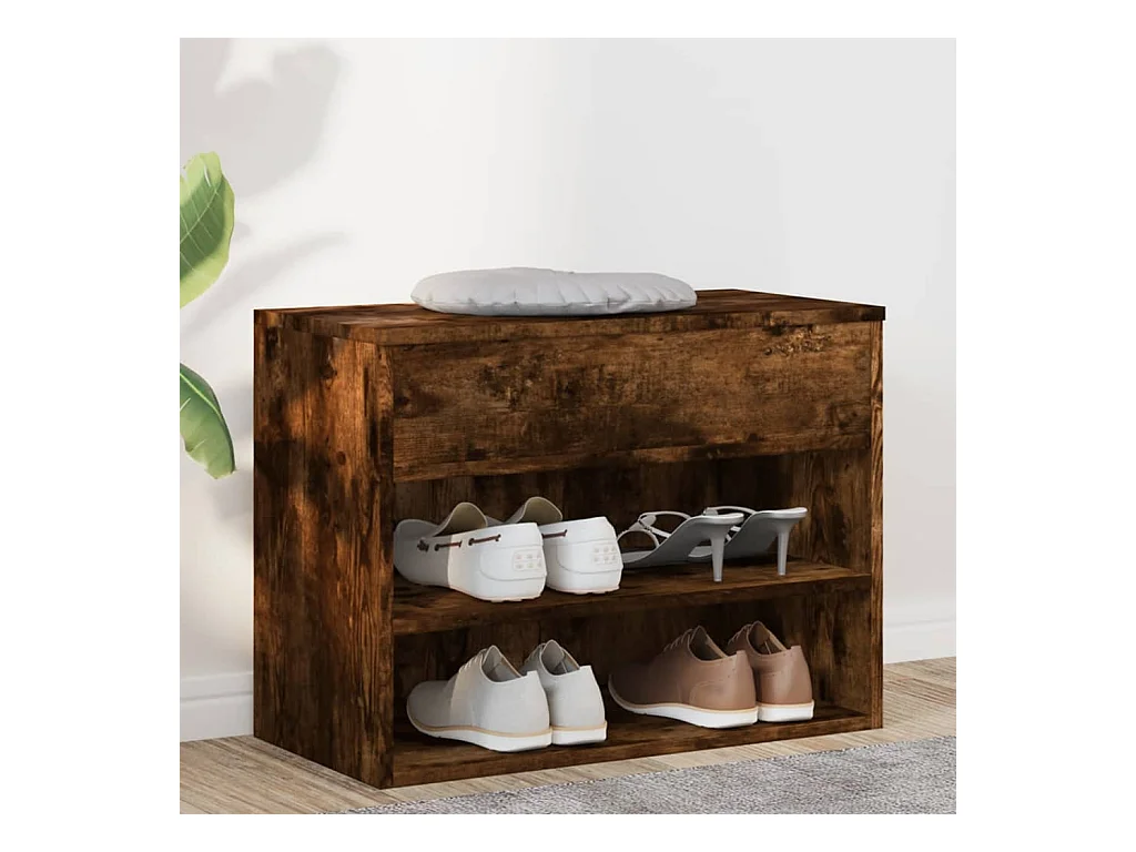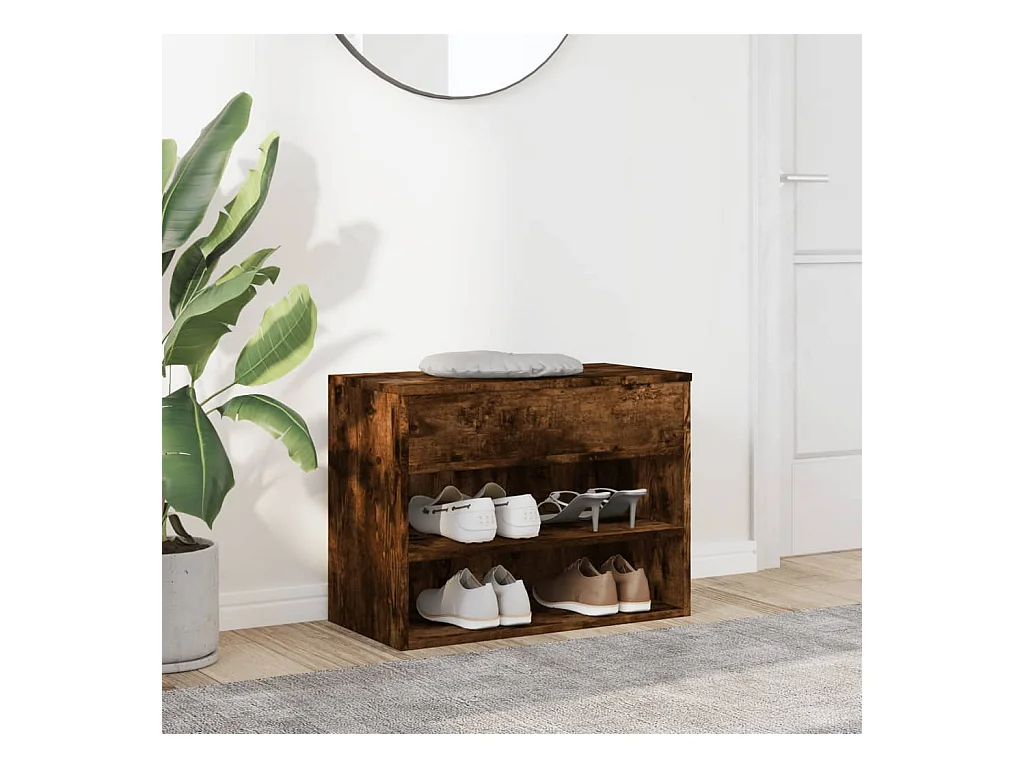 Panca portascarpe in rovere affumicato 60x30x45 cm in legno ingegnerizzato