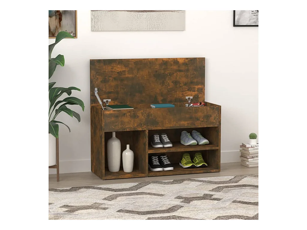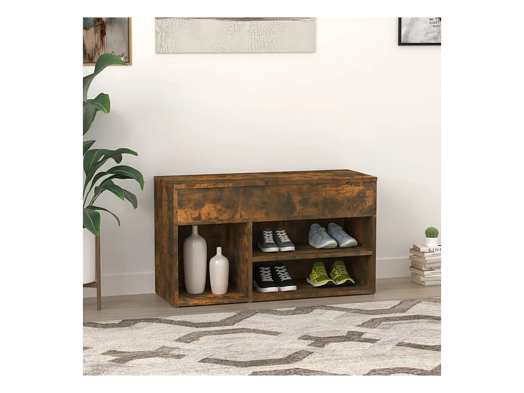 Panca portascarpe in rovere affumicato 80x30x45 cm in legno ingegnerizzato