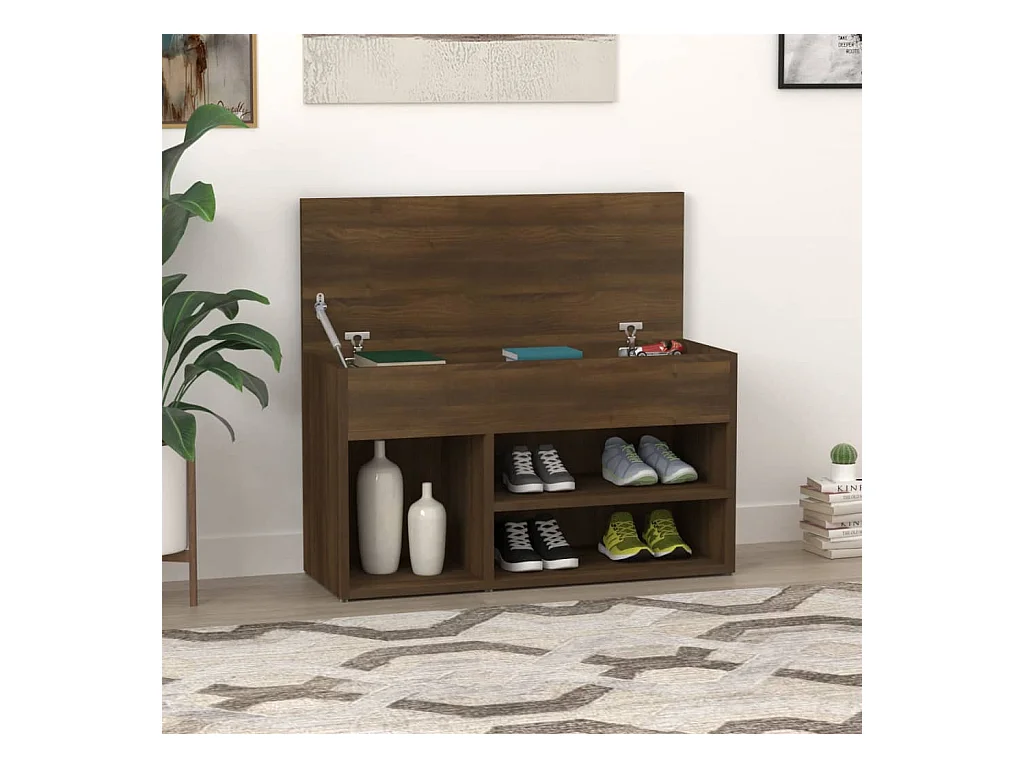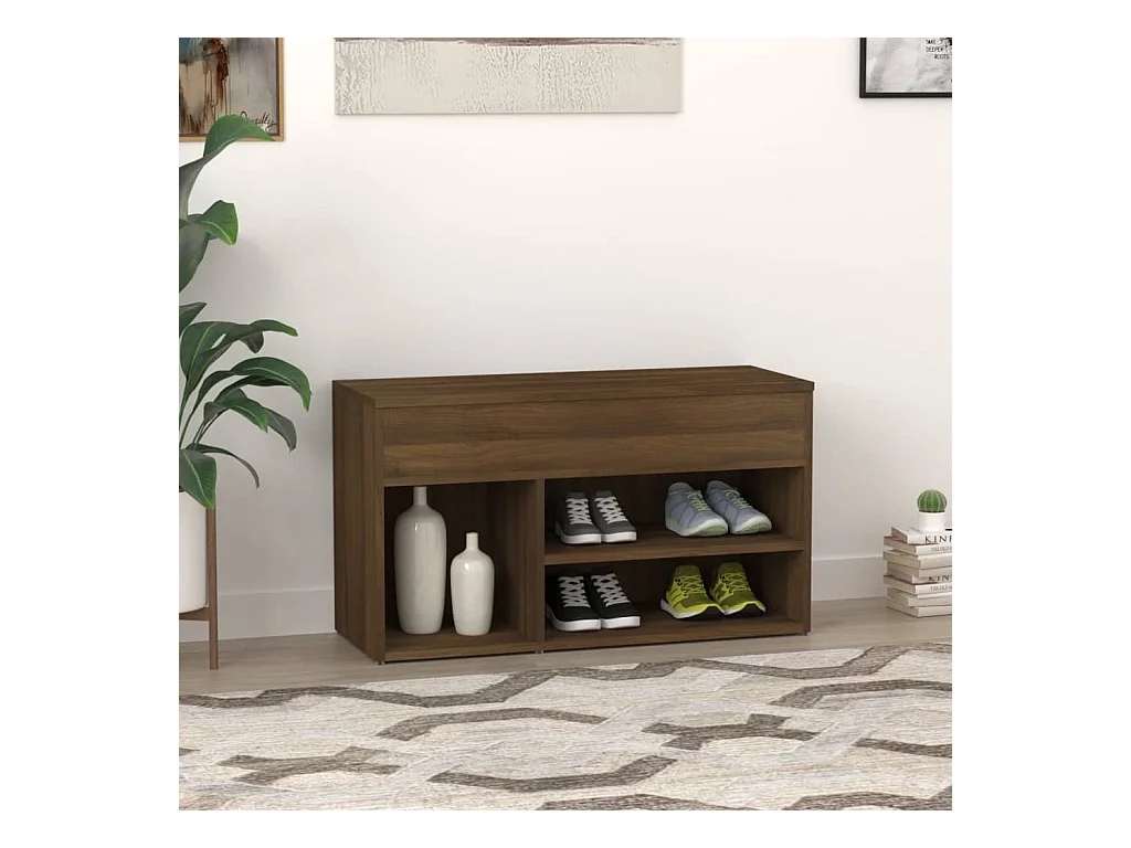 Panca portascarpe in rovere affumicato 80x30x45 cm in legno ingegnerizzato
