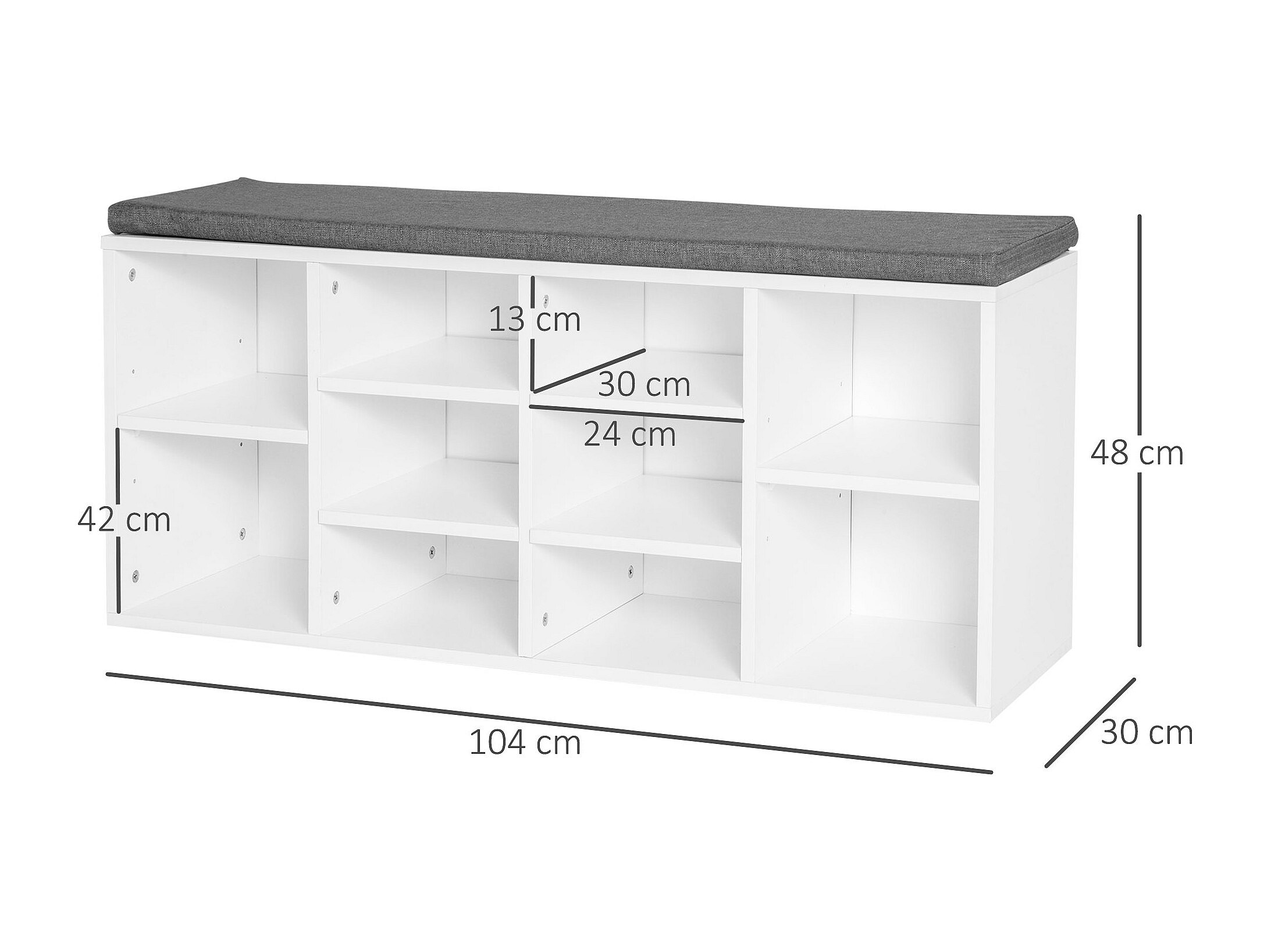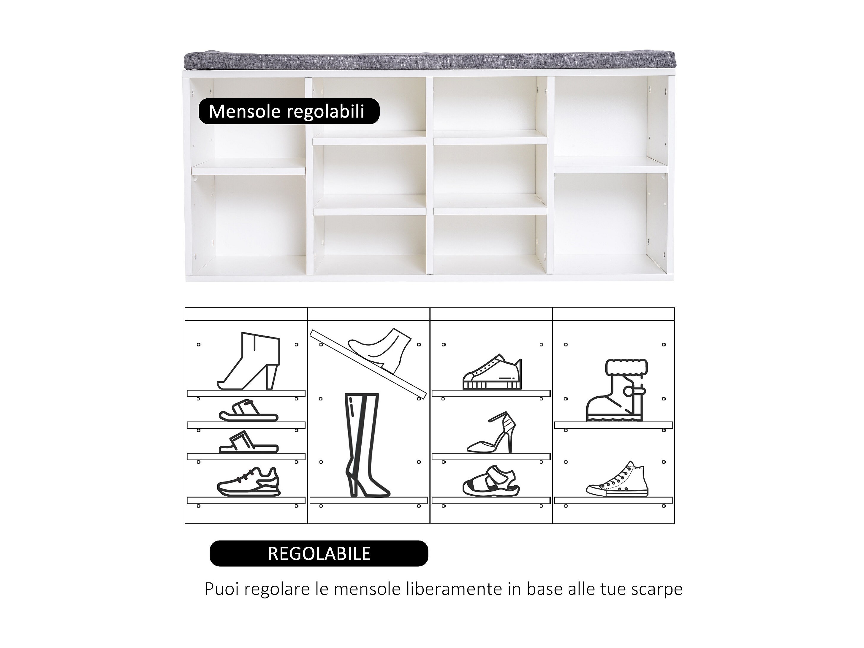 Panca scarpiera per 8-10 paia con ripiani regolabili in legno