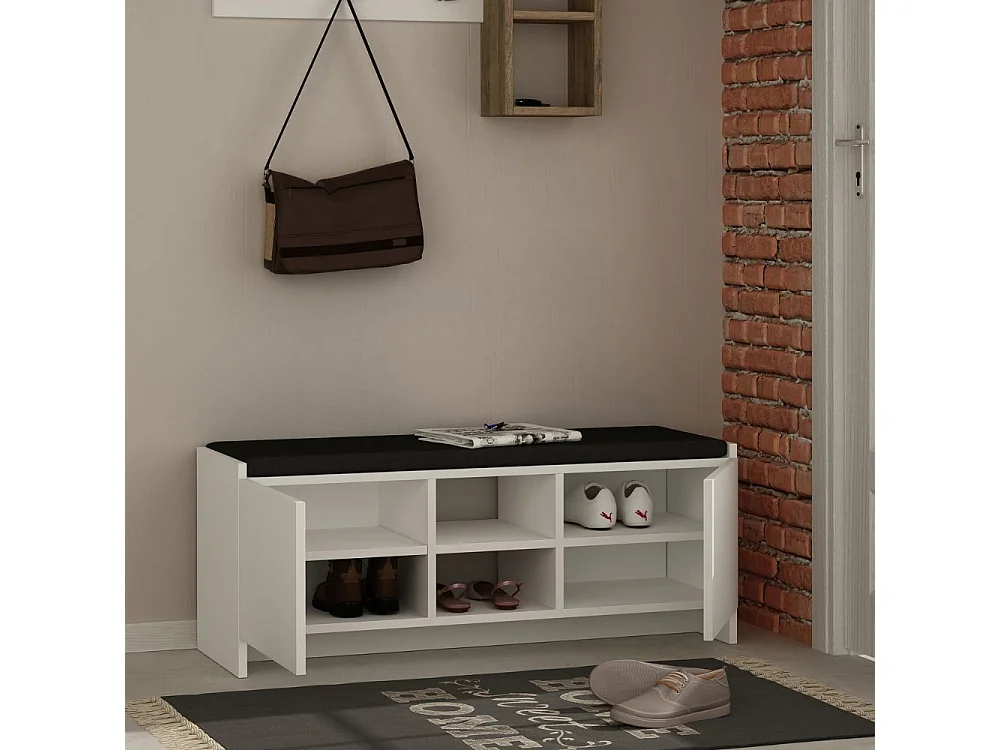 Panca scarpiera Zulla con cuscino e 2 ante colore bianco