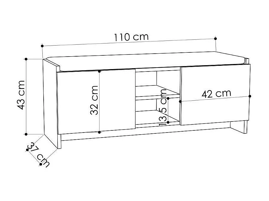 Panca scarpiera colore antracite Zulla con cuscino e 2 ante