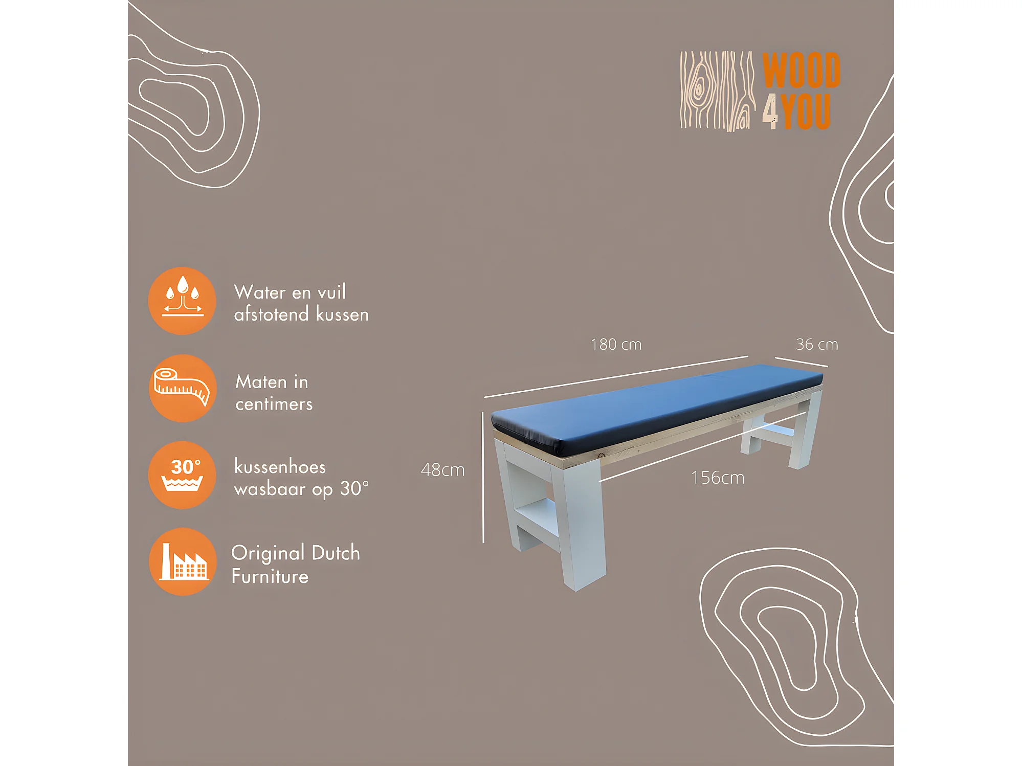 Panca Seattle - 180Lx40Hx38P cm con base in legno di abete rosso spruzzato bianco incl. cuscino