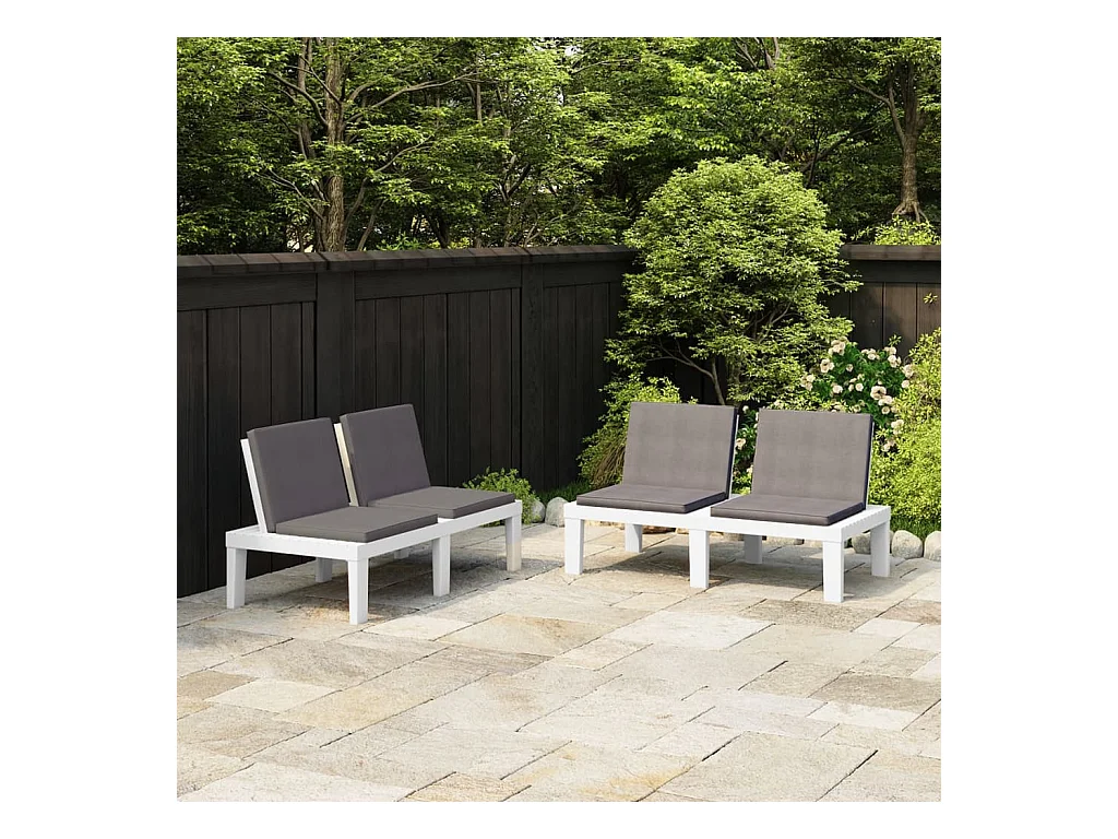 Panche per arredo da giardino con cuscini 2 pz. Plastica Bianca