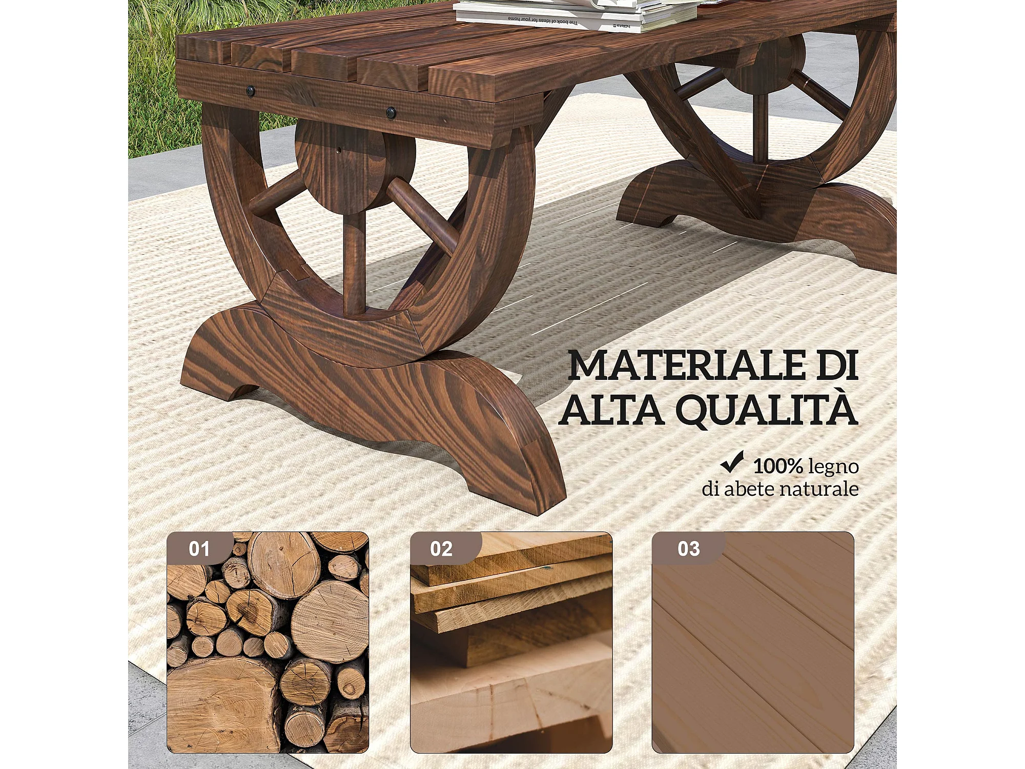 Panchina 2 Posti da Giardino con Design a Ruota in Legno di Abete