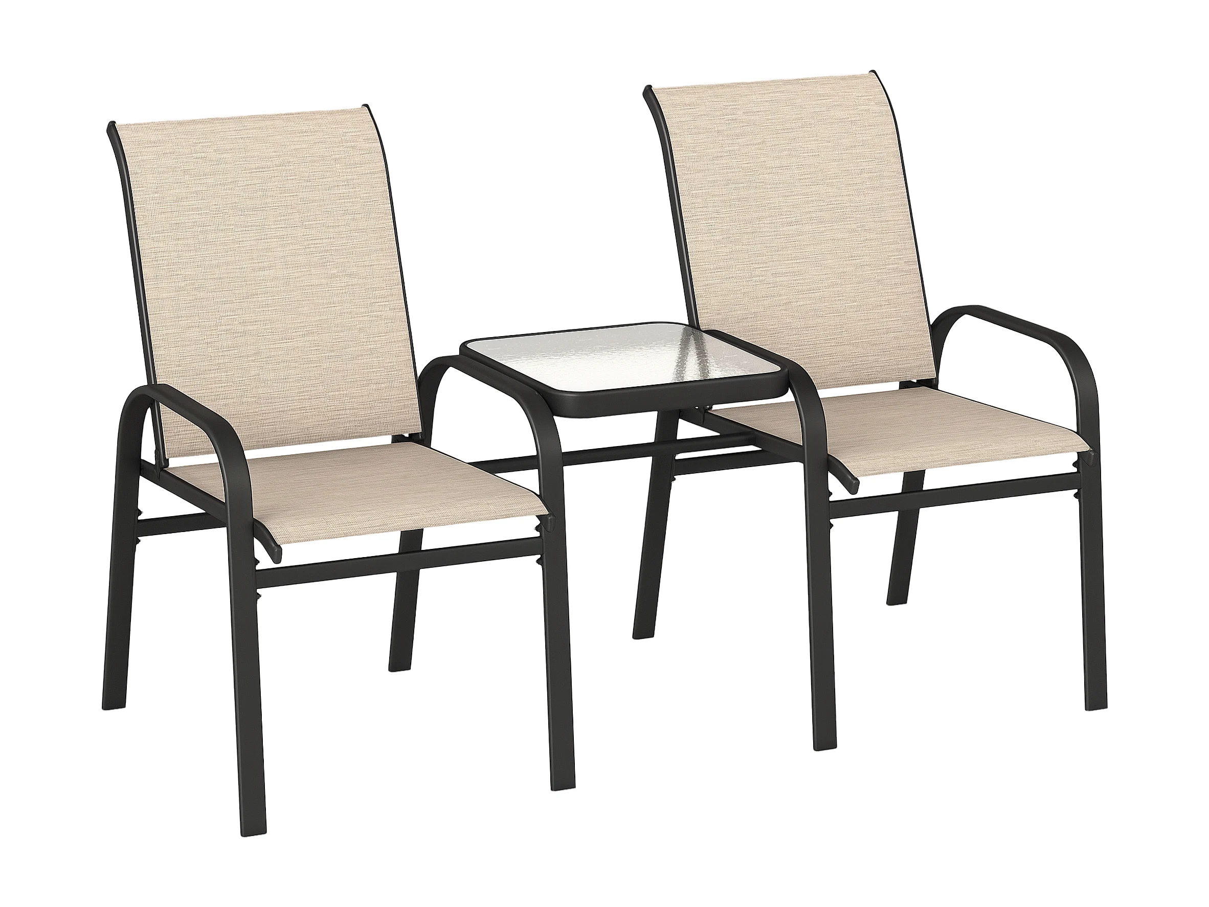 Panchina 2 posti da giardino con tavolo centrale in vetro marrone nero
