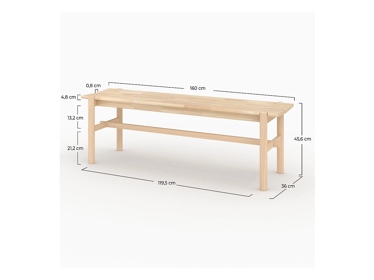 Panca decorativa in legno massello in tono marrone chiaro 120x45cm - SIEP - DECOWOOD