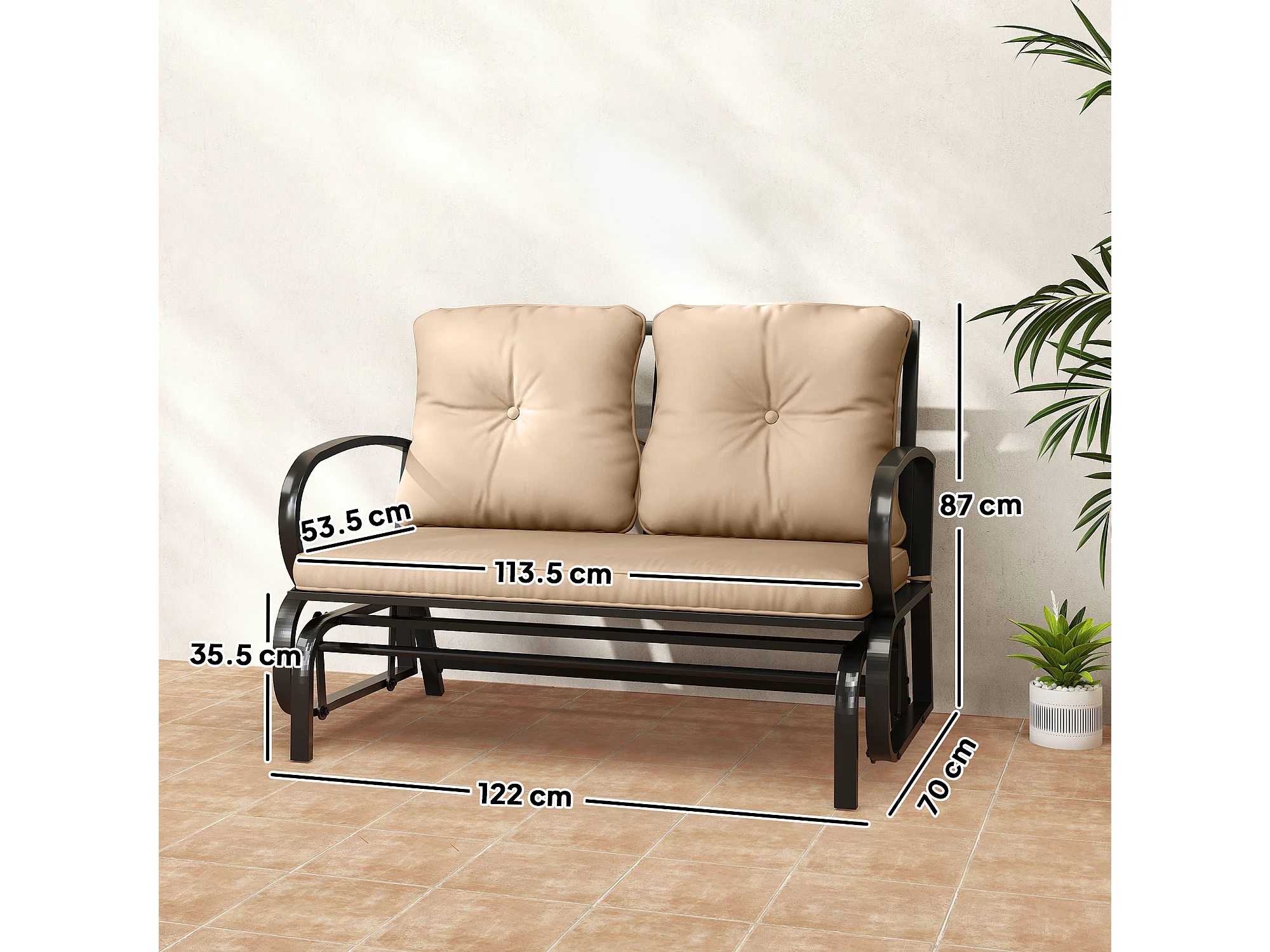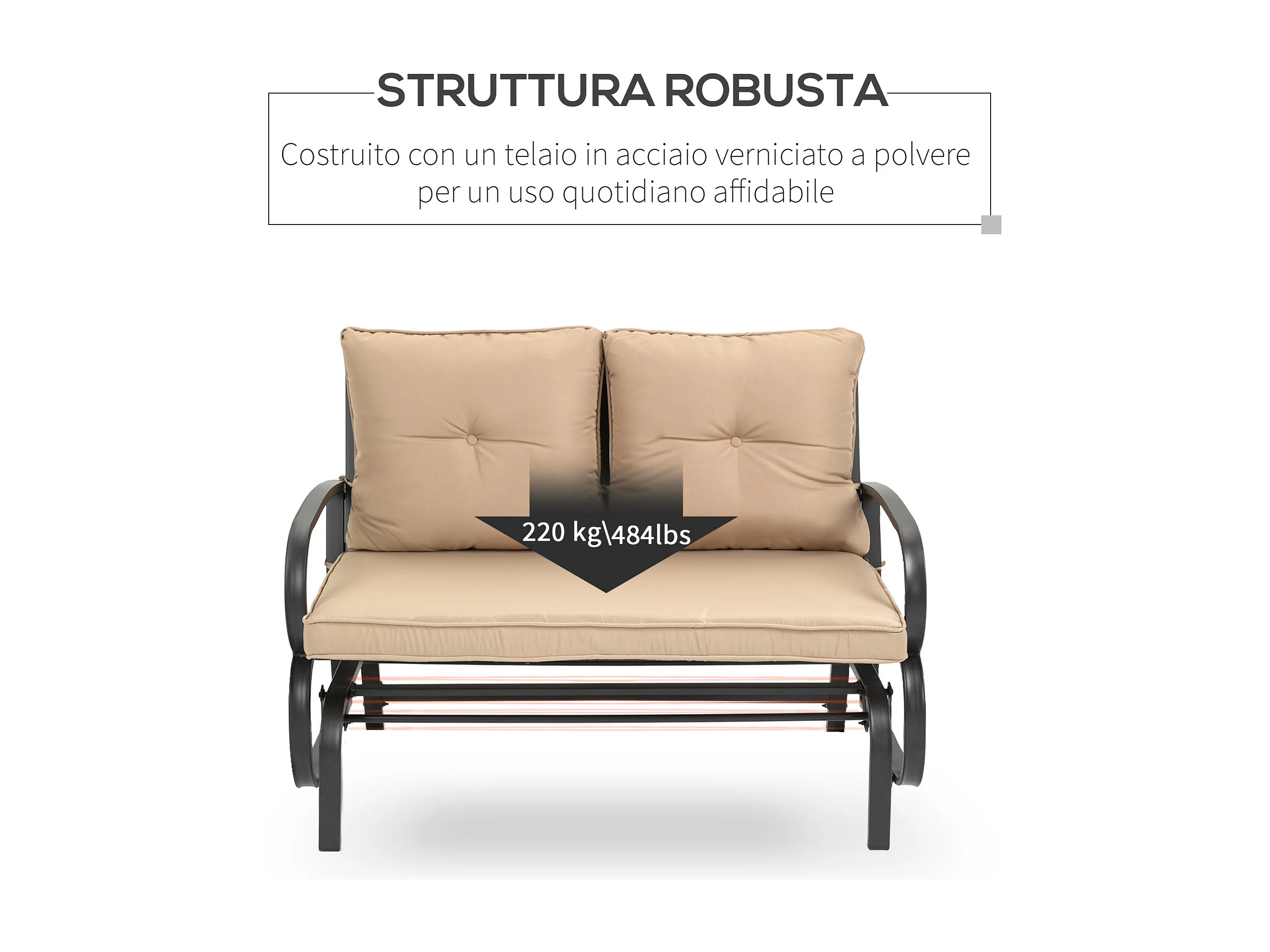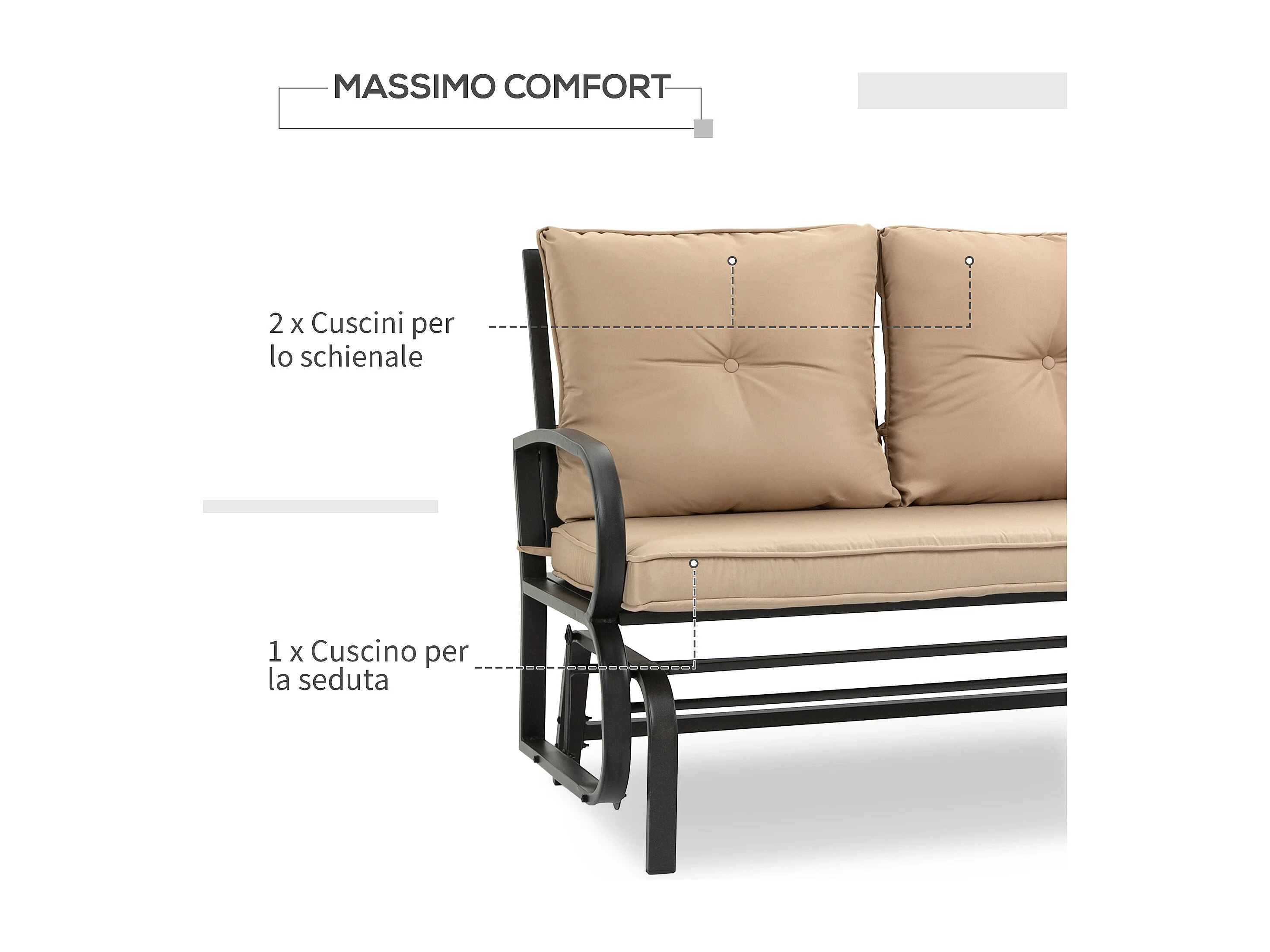 Panchina a dondolo 2 persone cuscini per seduta e schienale