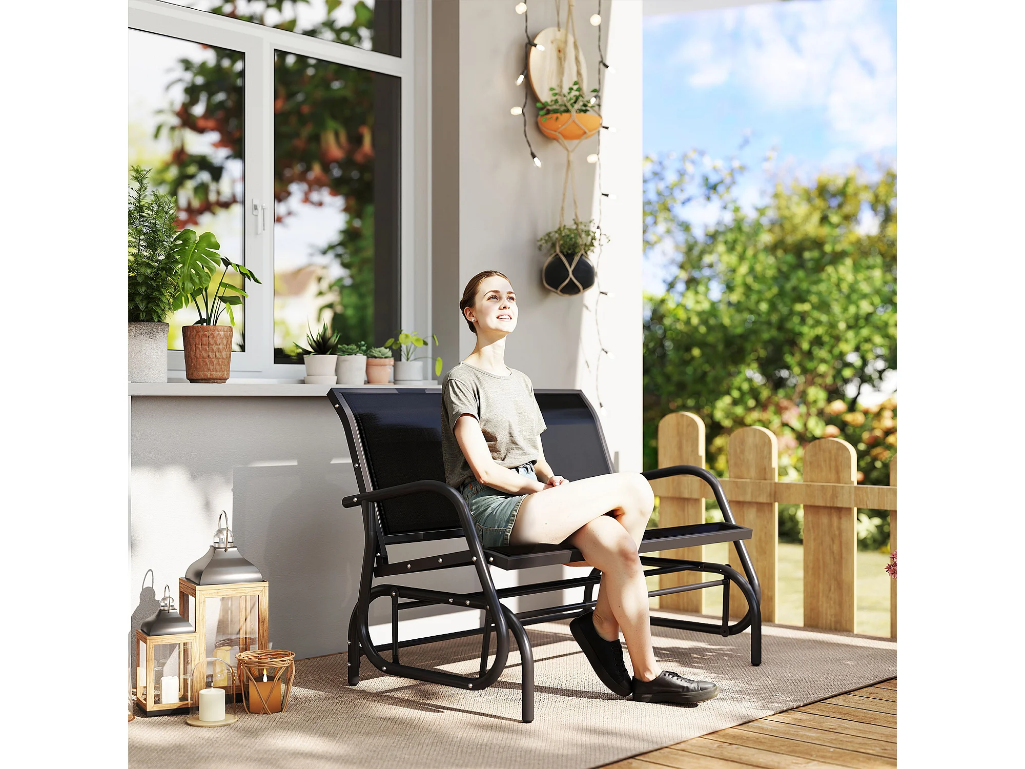 Panchina a dondolo da esterno panca giardino biposto metallo nero