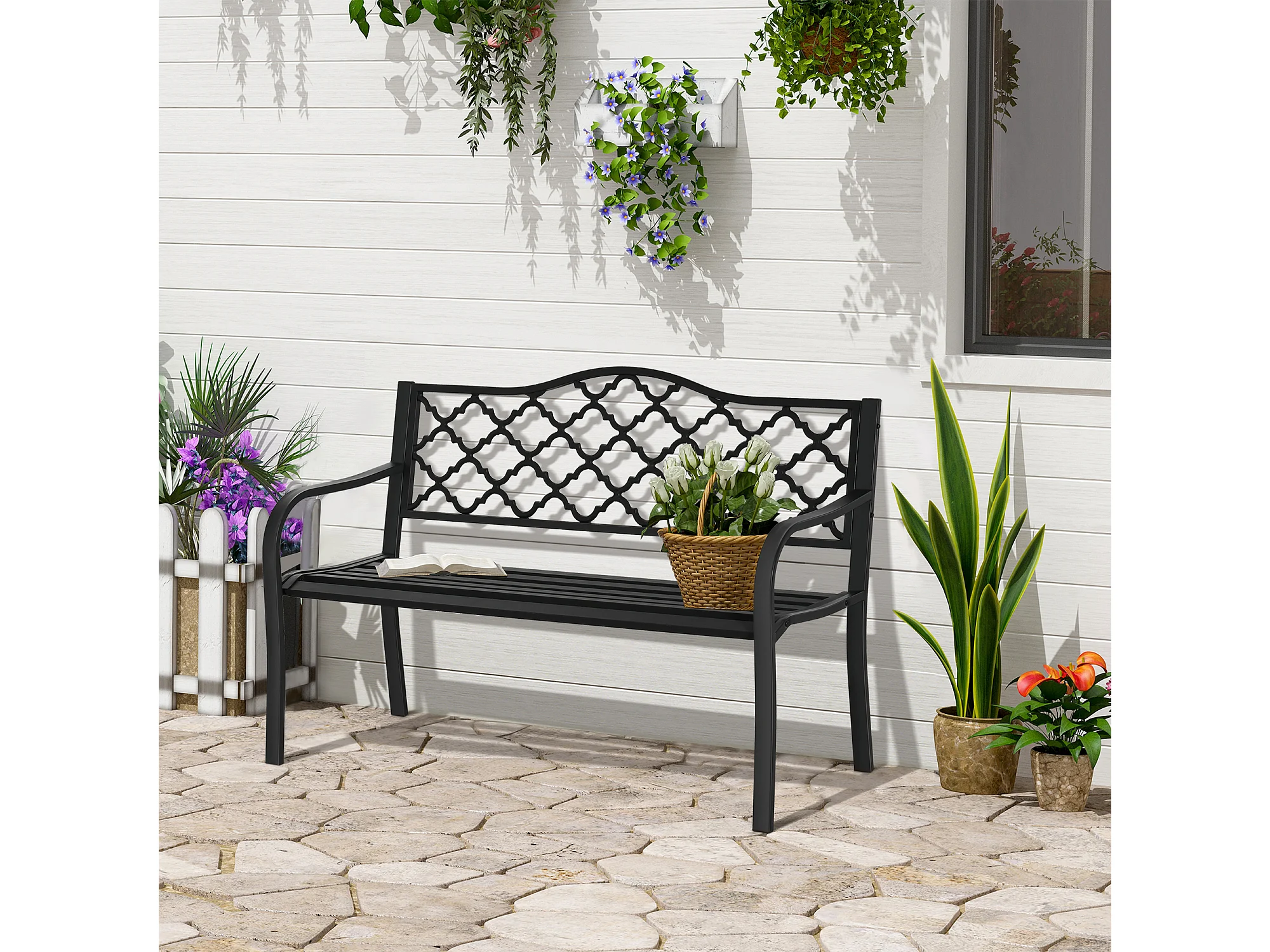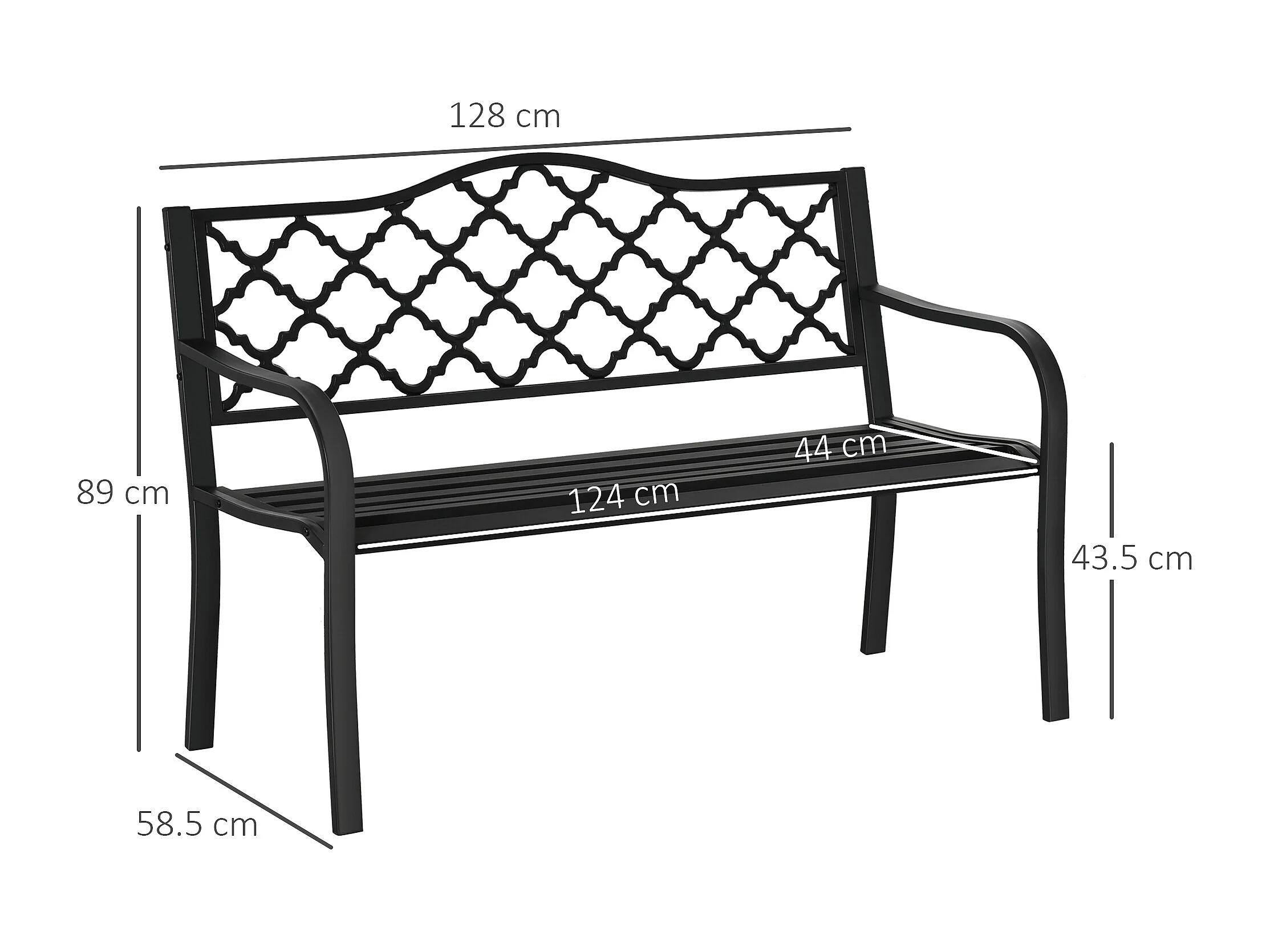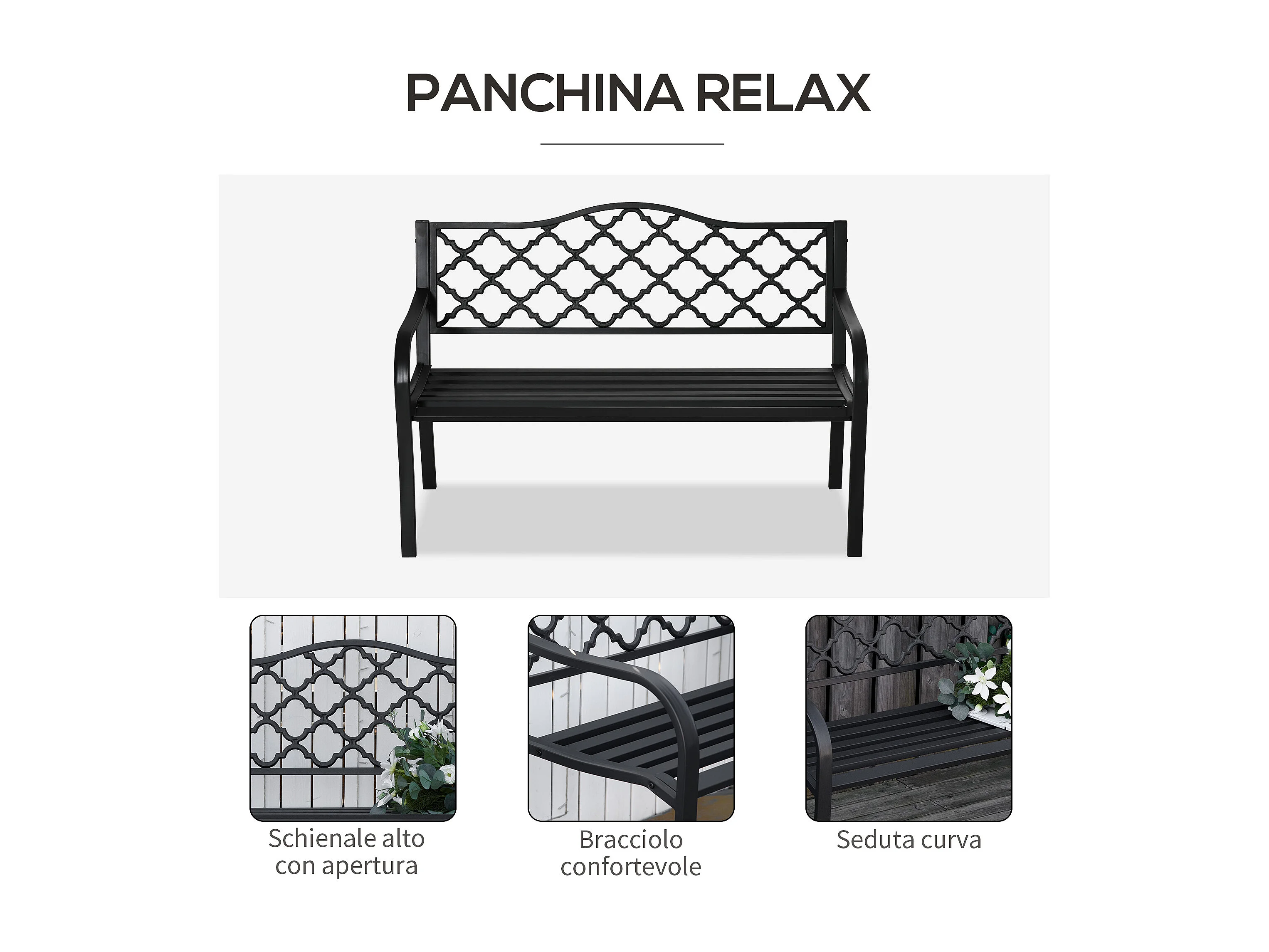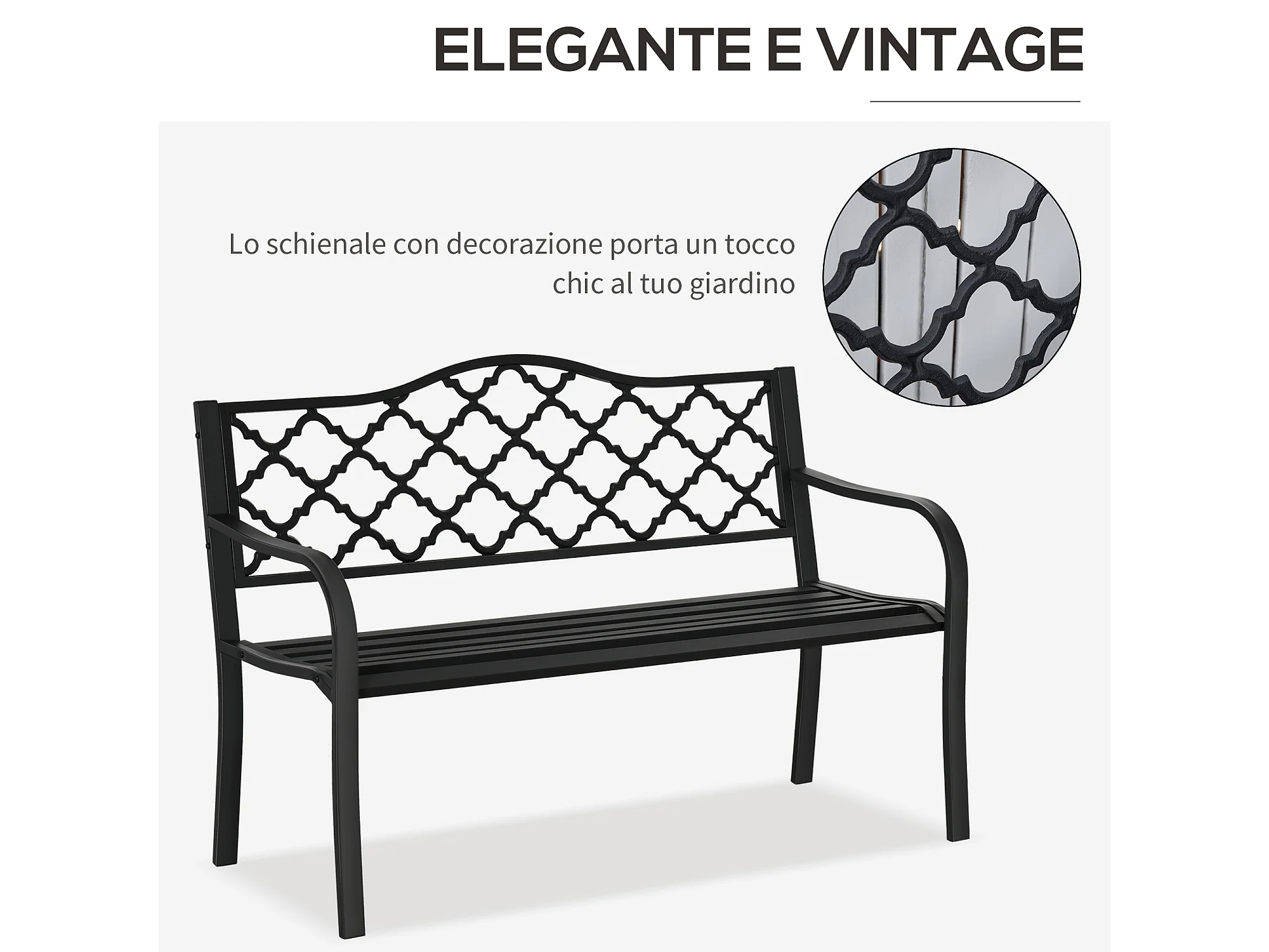 Panchina da esterno a 2 posti acciaio e ghisa con braccioli