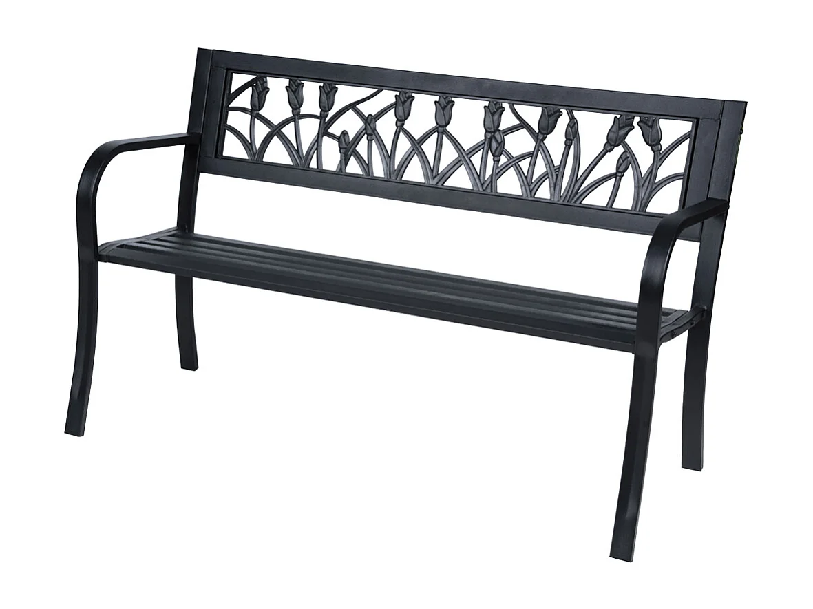 Panchina da Esterno Panca Giardino in Ferro con Schienale Decorazione Tulipani