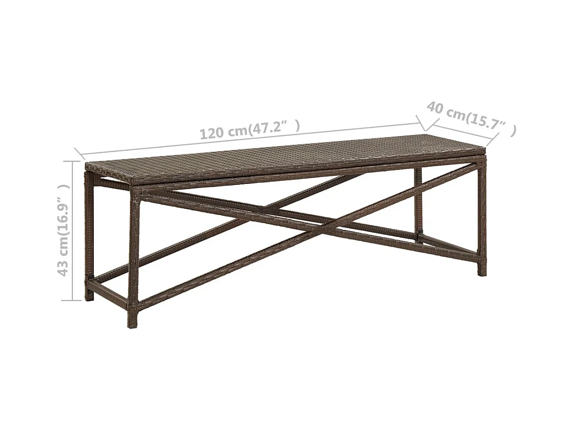 Panca da Giardino con Cuscino Marrone 116x46x57cm in Polyrattan