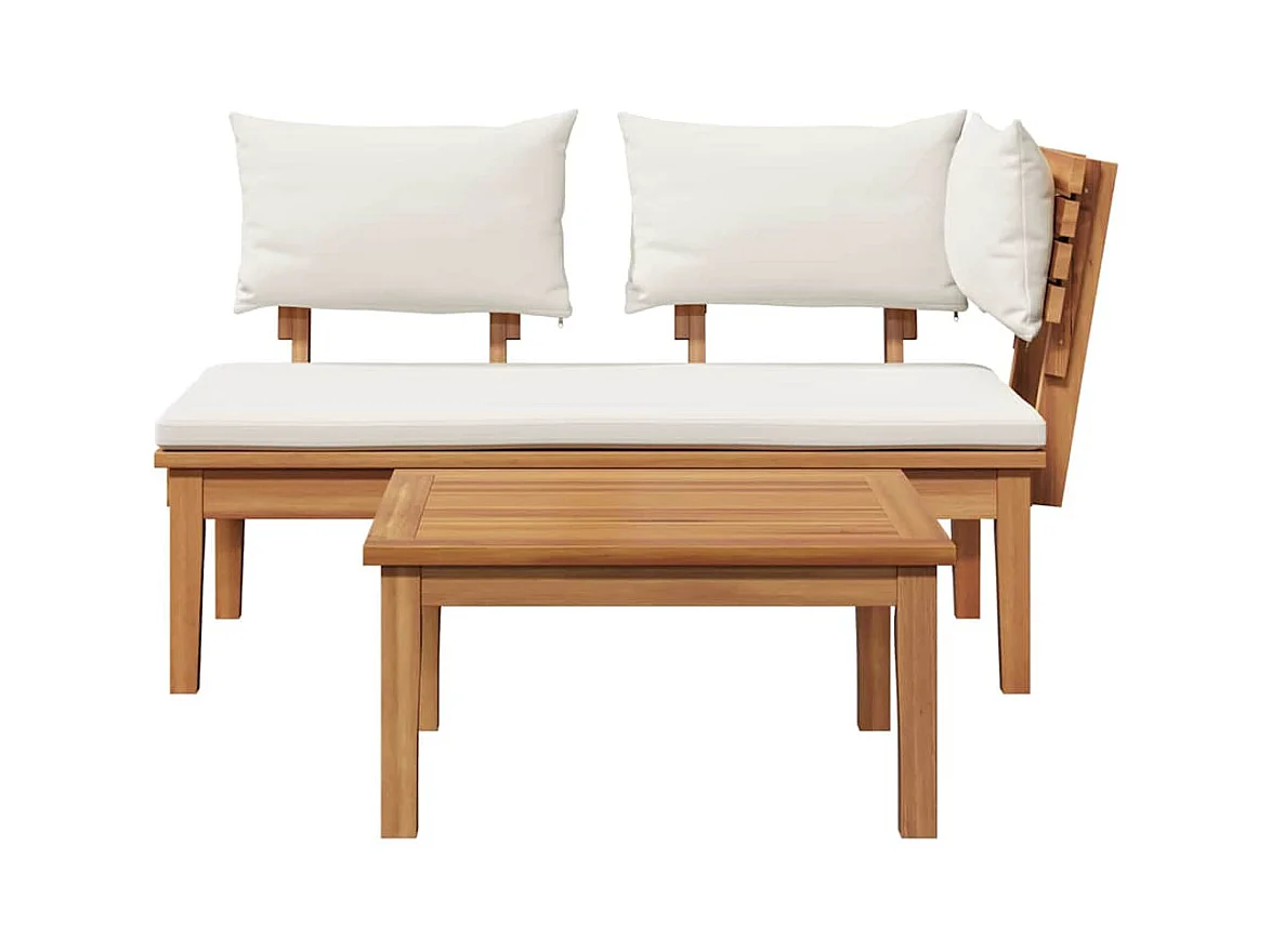 Sdraio da giardino con cuscini, 3 pezzi in legno massello di acacia