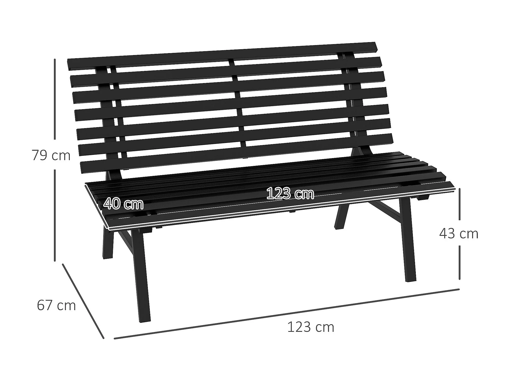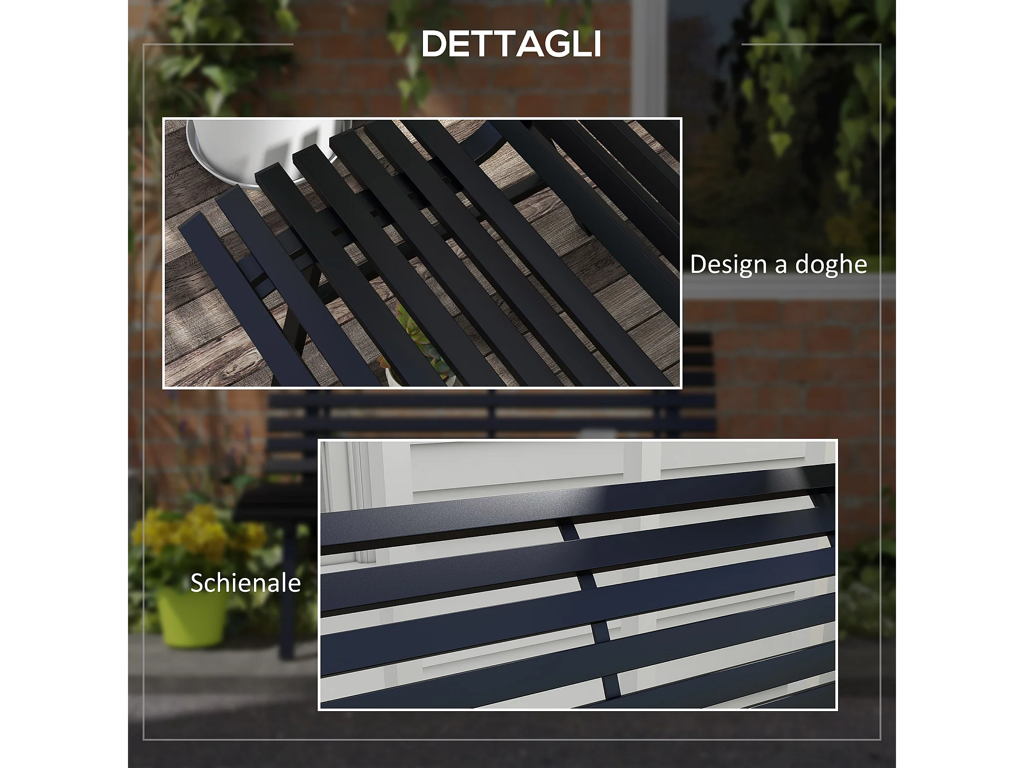 Panchina da giardino 2 posti a doghe in alluminio nero