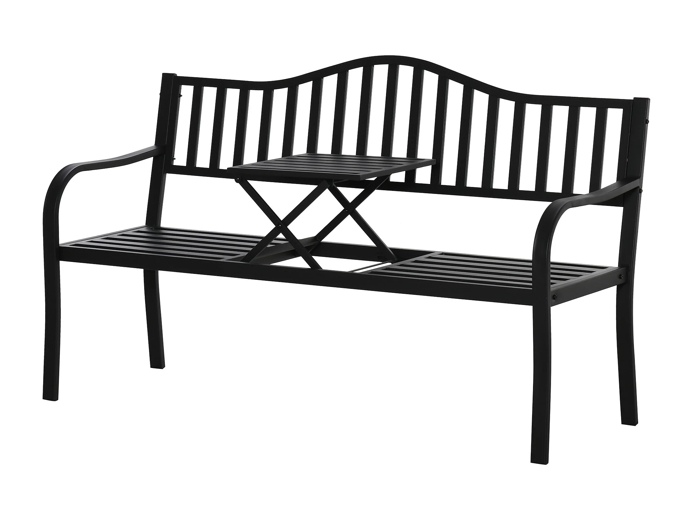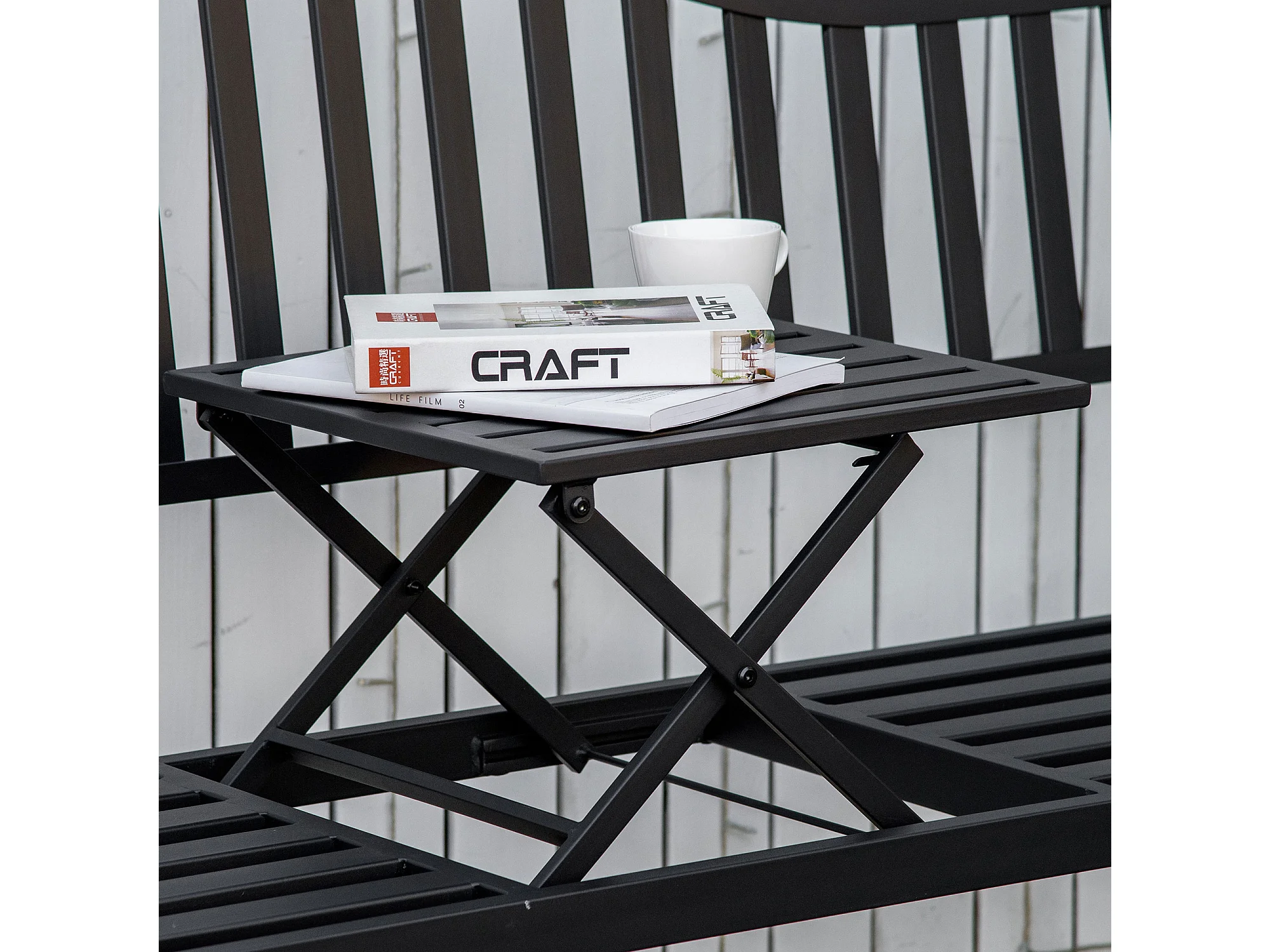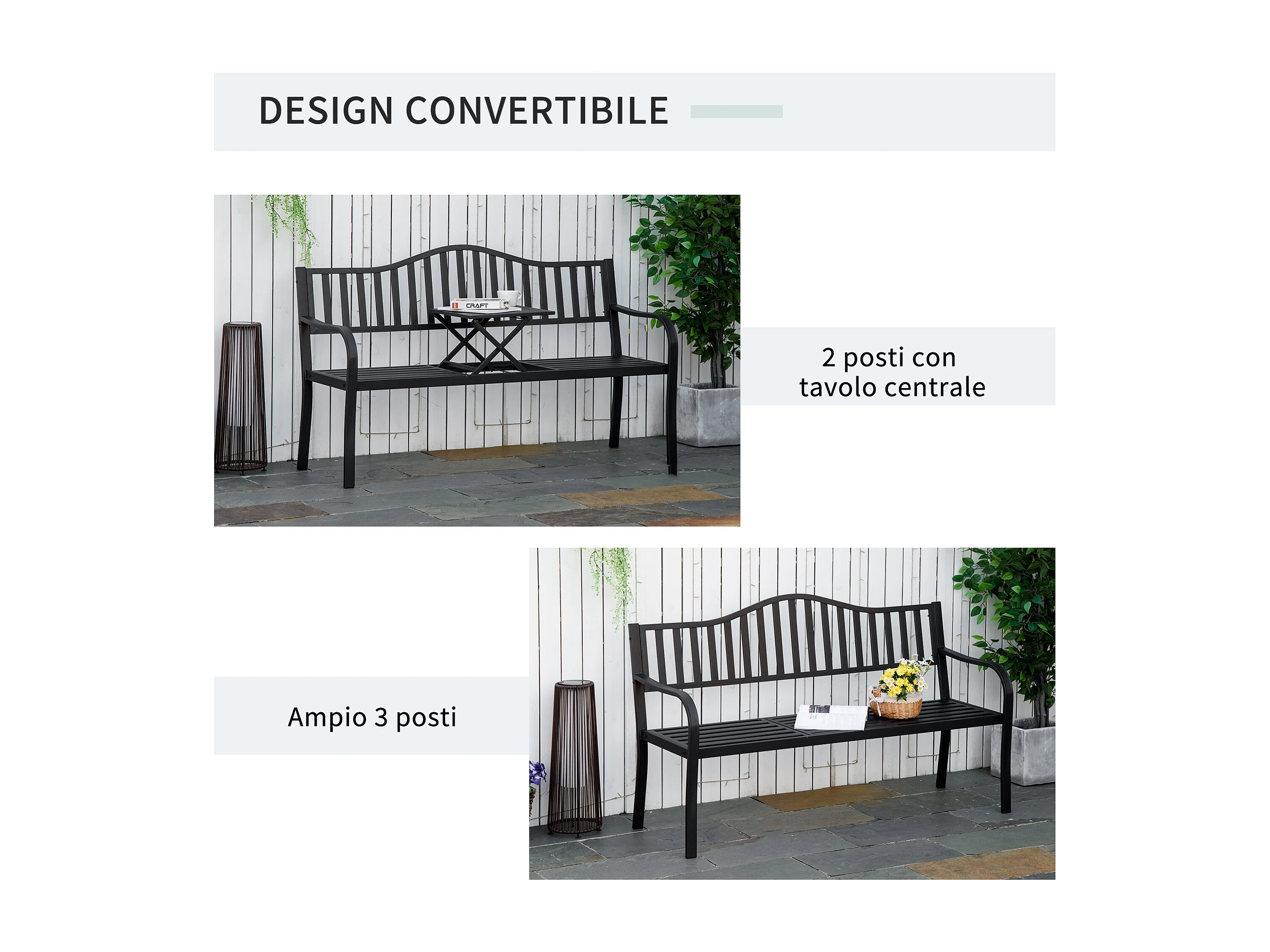 Panchina da giardino 3 posti a doghe con tavolino nero