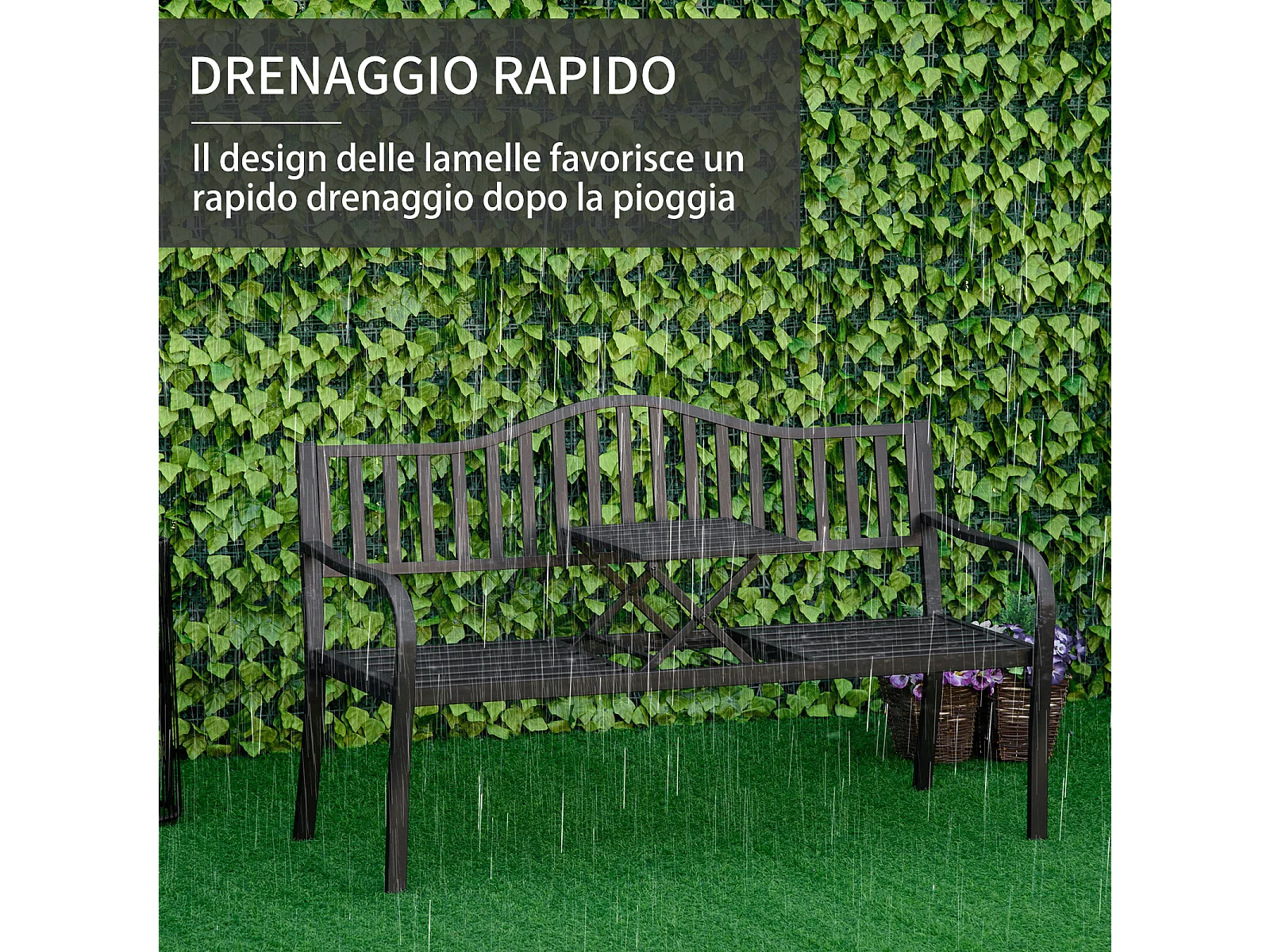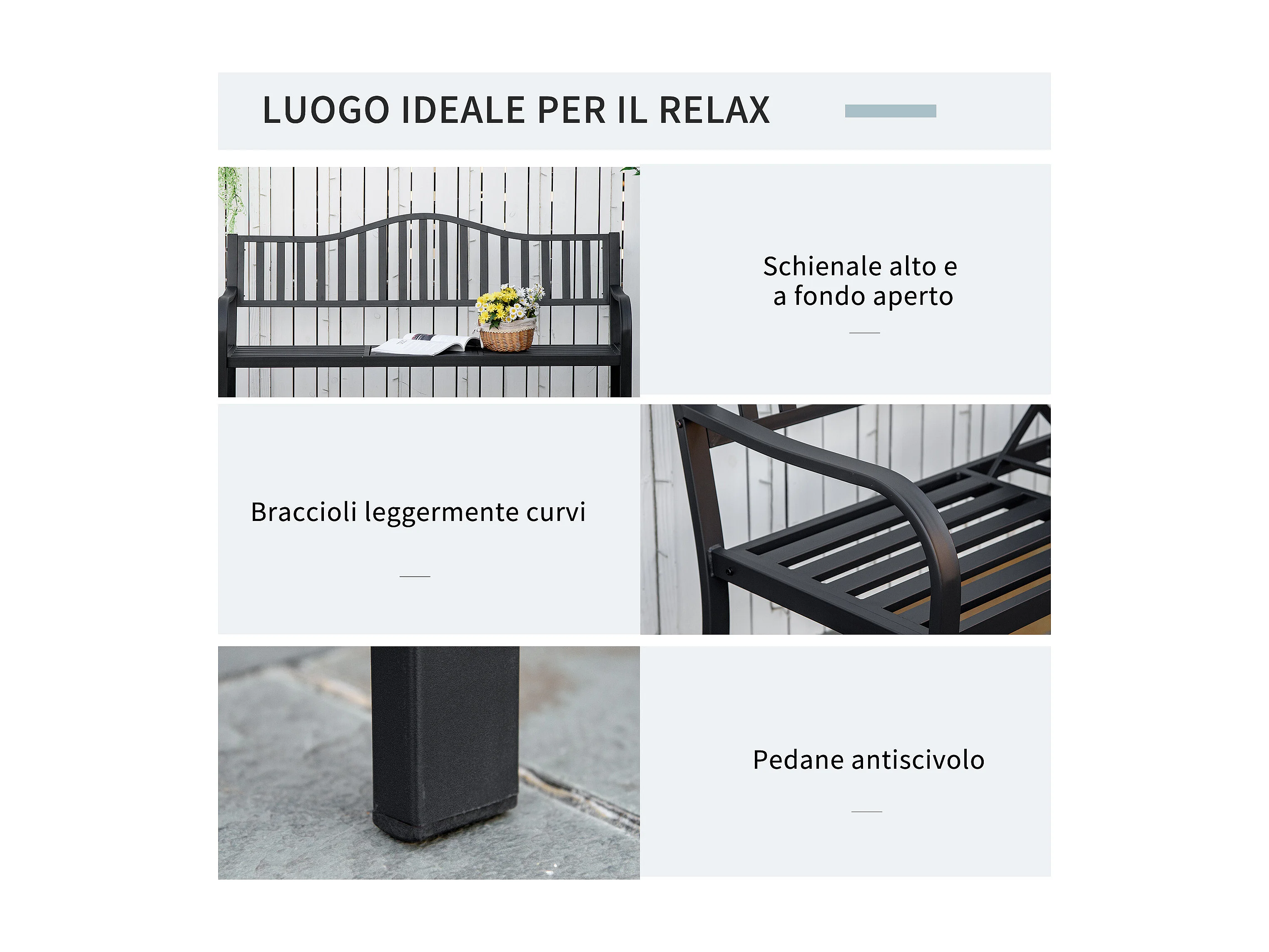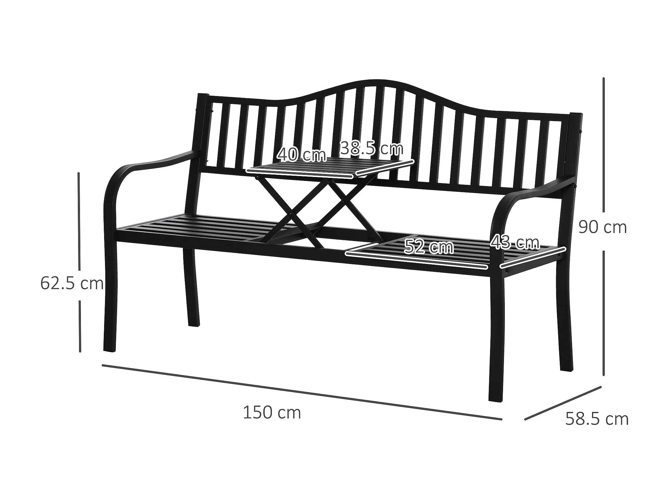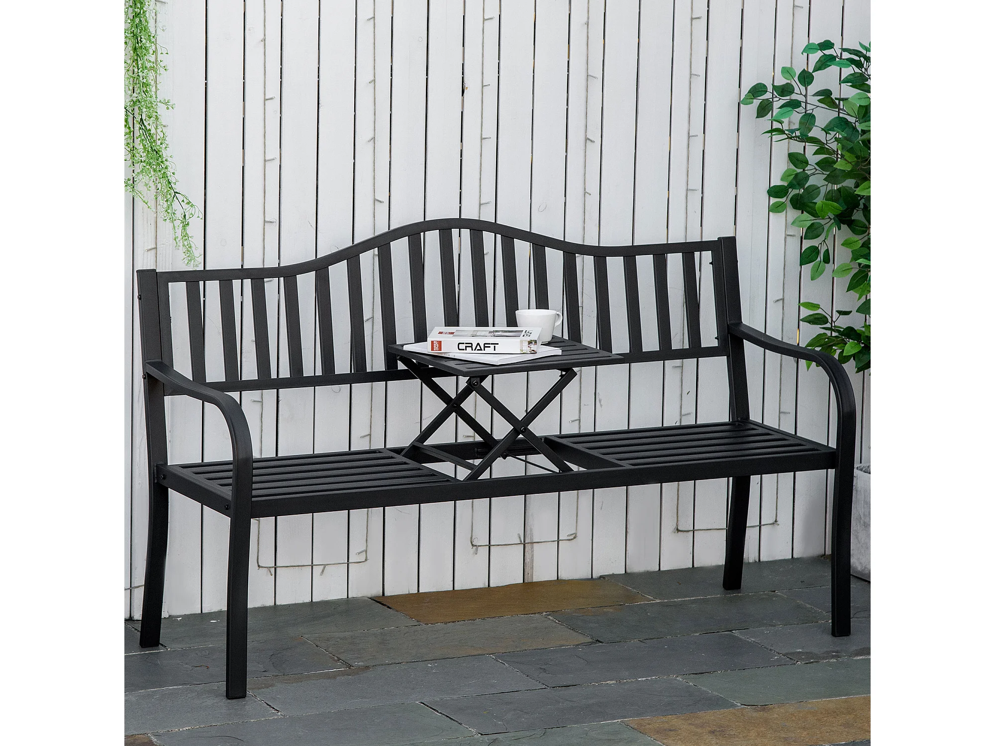 Panchina da giardino 3 posti a doghe con tavolino nero