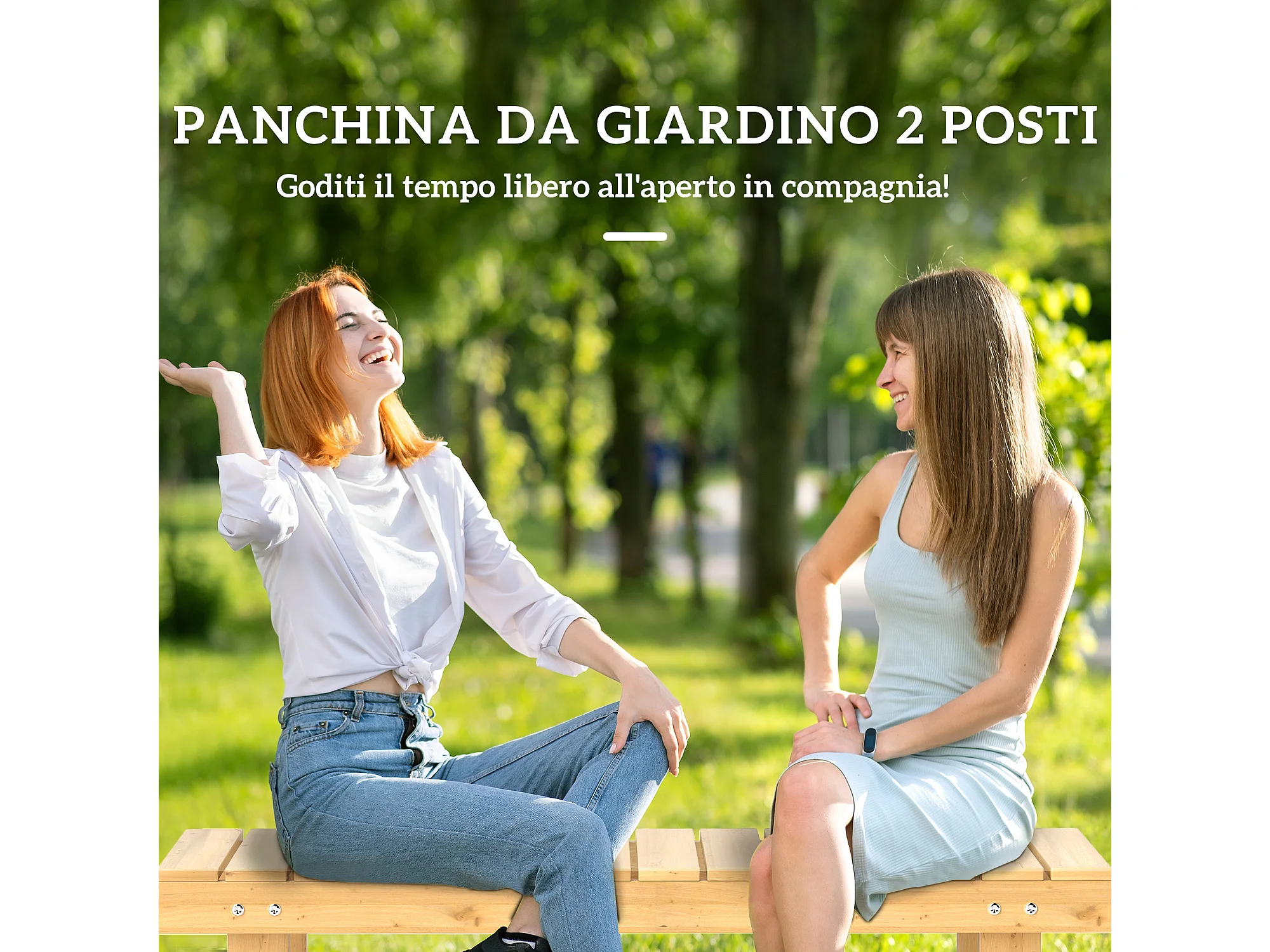 Panchina da giardino a 2 posti impermeabile in legno di abete