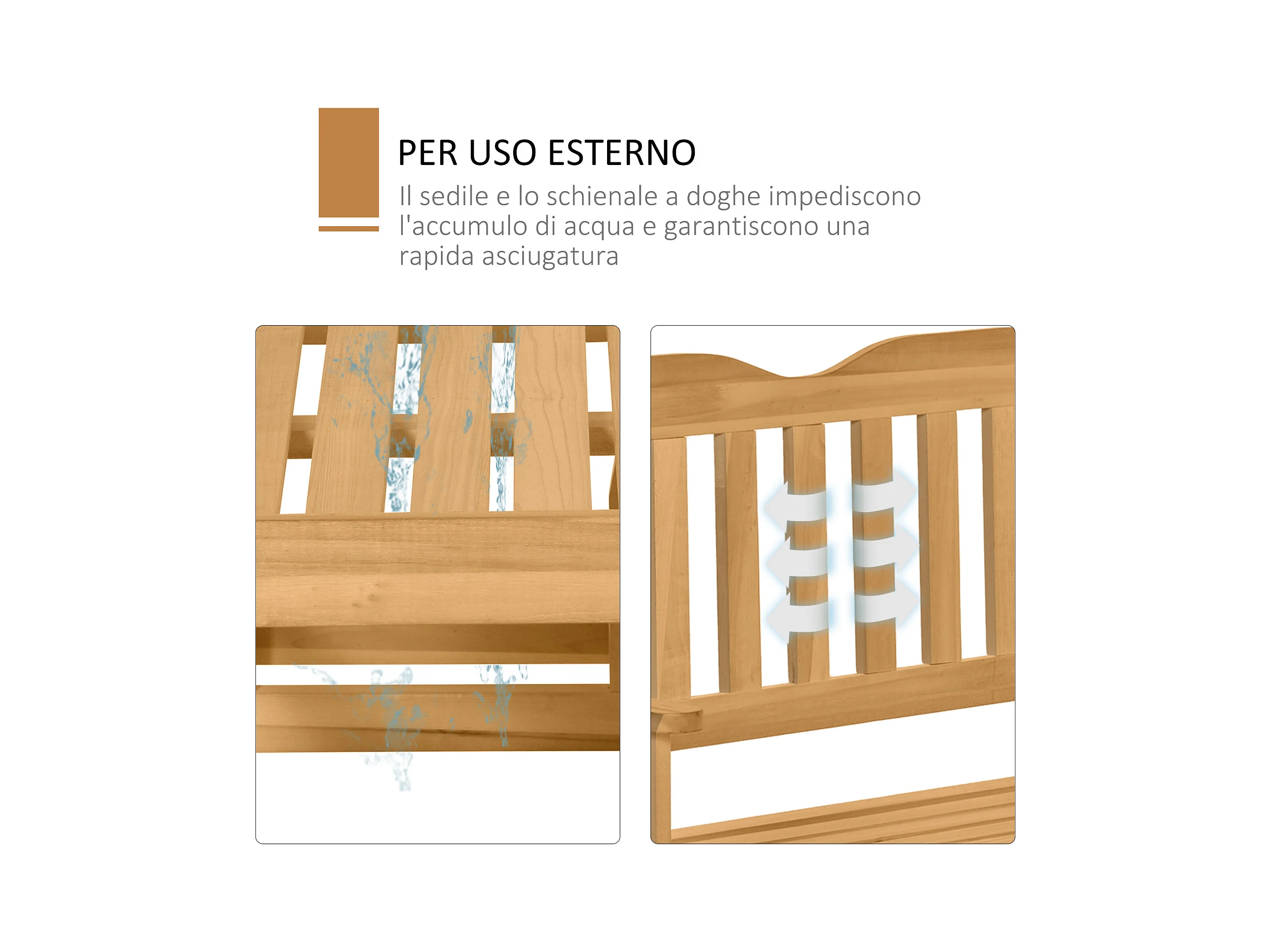 Panchina da giardino a dondolo da 2 posti legno colore legno
