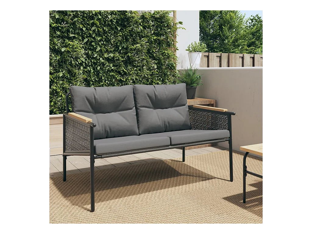 Panchina da Giardino con Cuscini 116 cm Nera in Acciaio