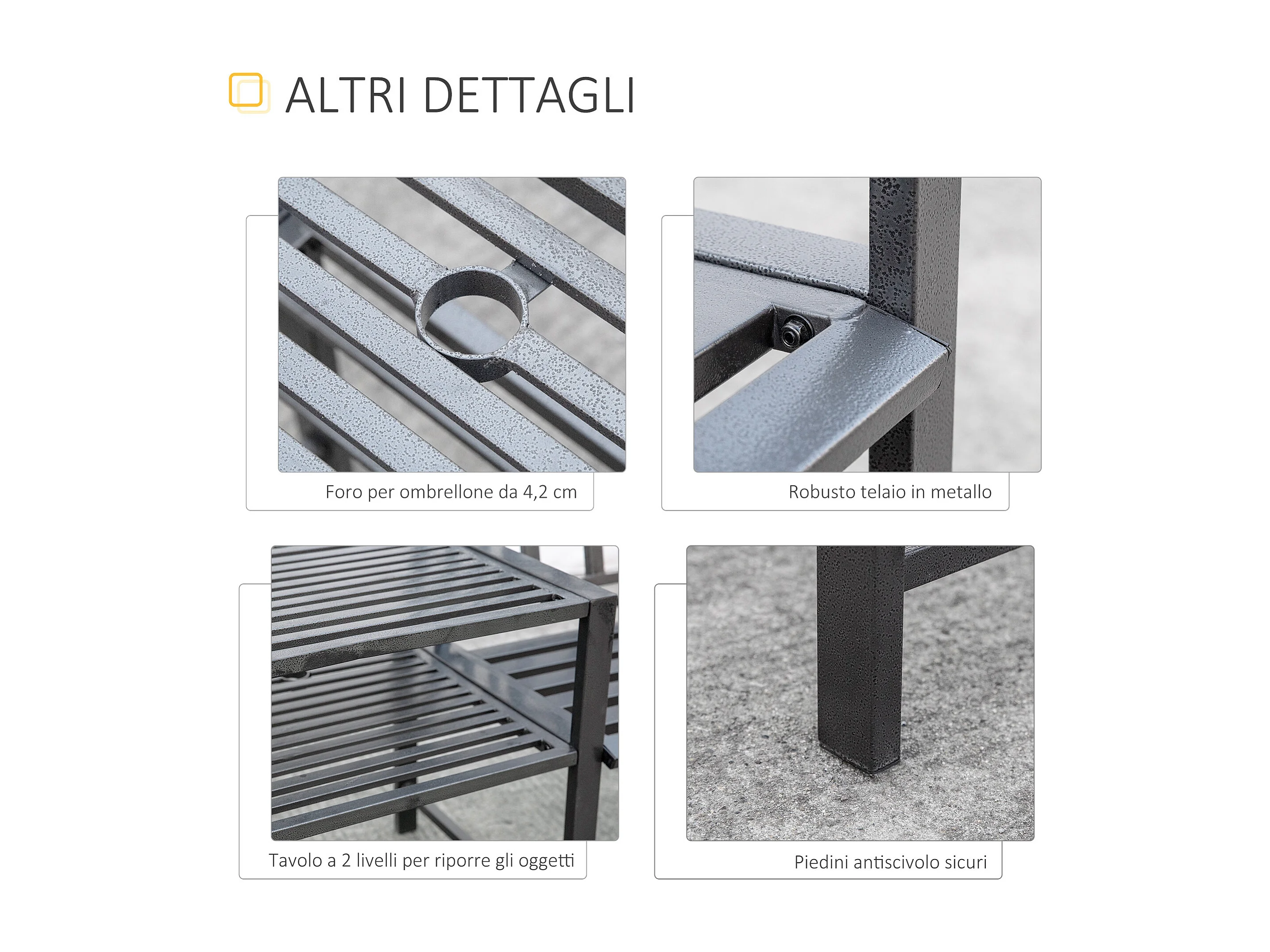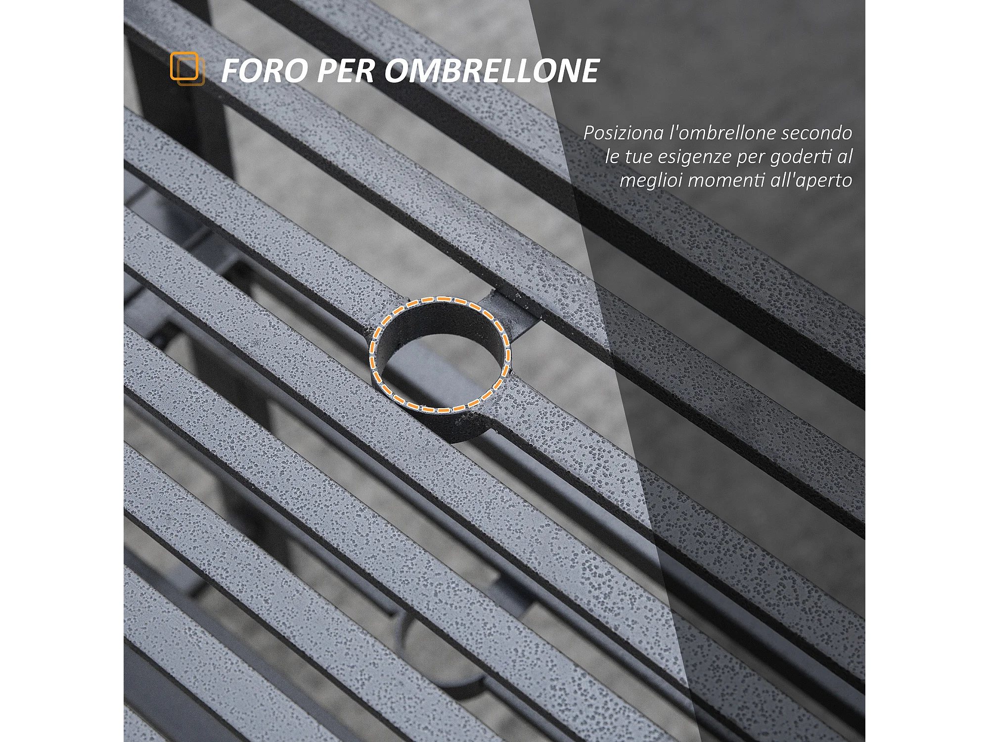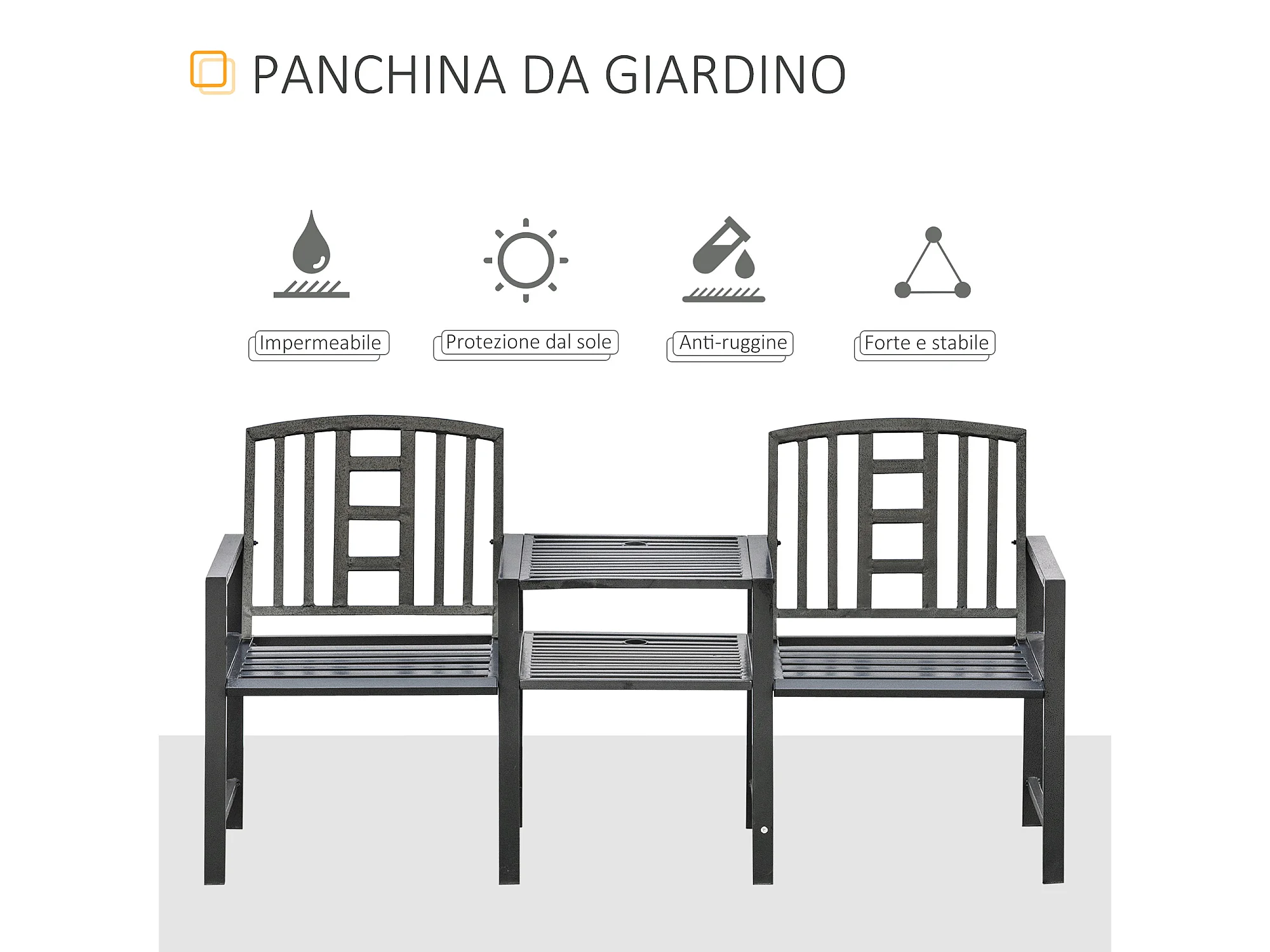 Panchina Moderna 2 Posti da Giardino con Tavolino e Foro per Ombrellone