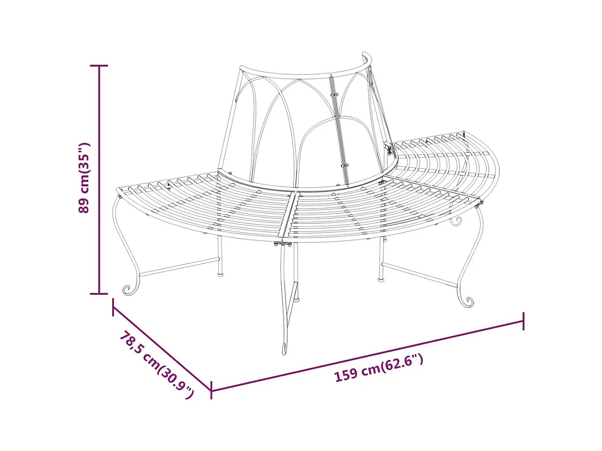 Panchina per Albero Semi Circolare Ø159 cm Nera in Acciaio