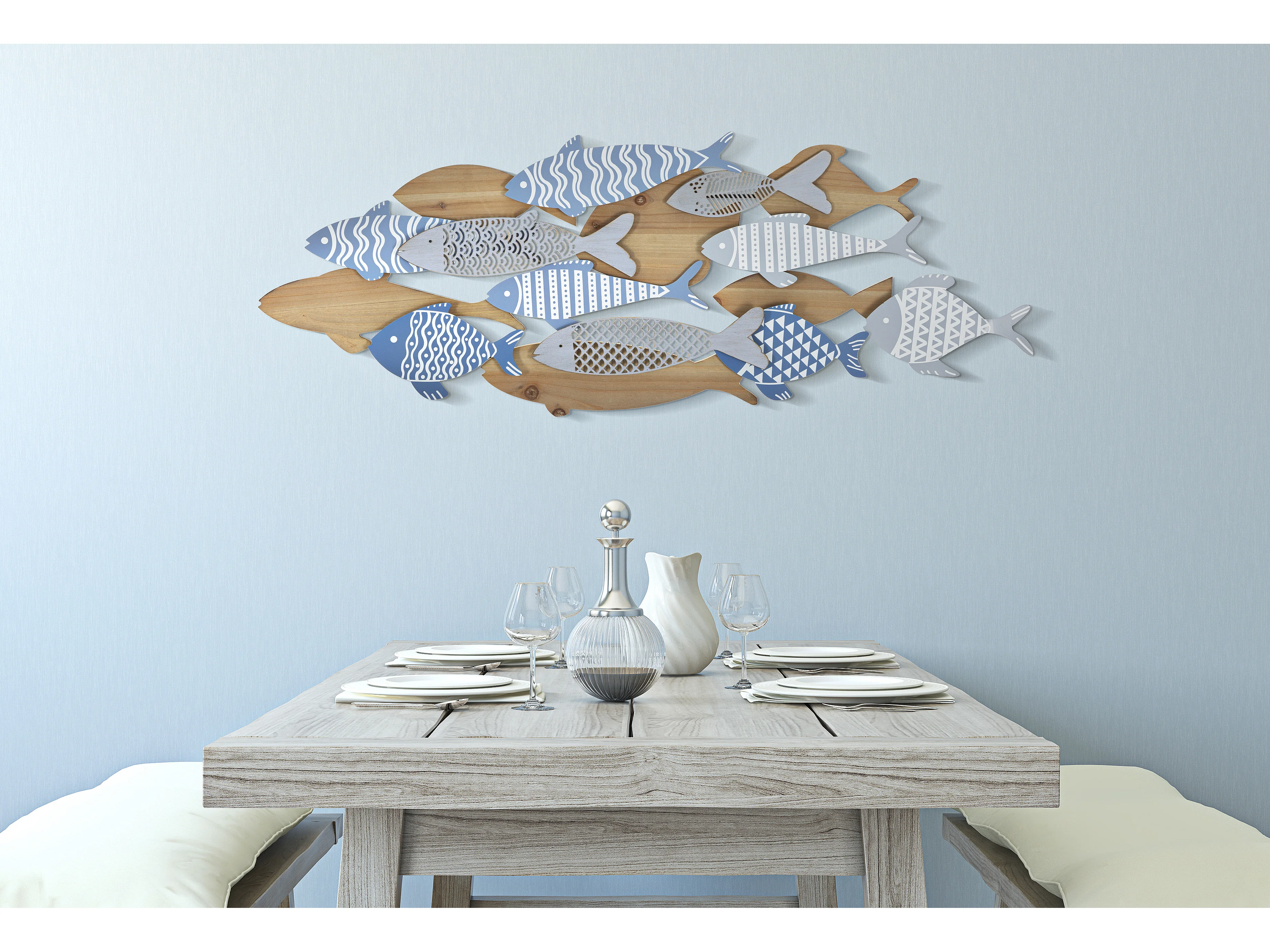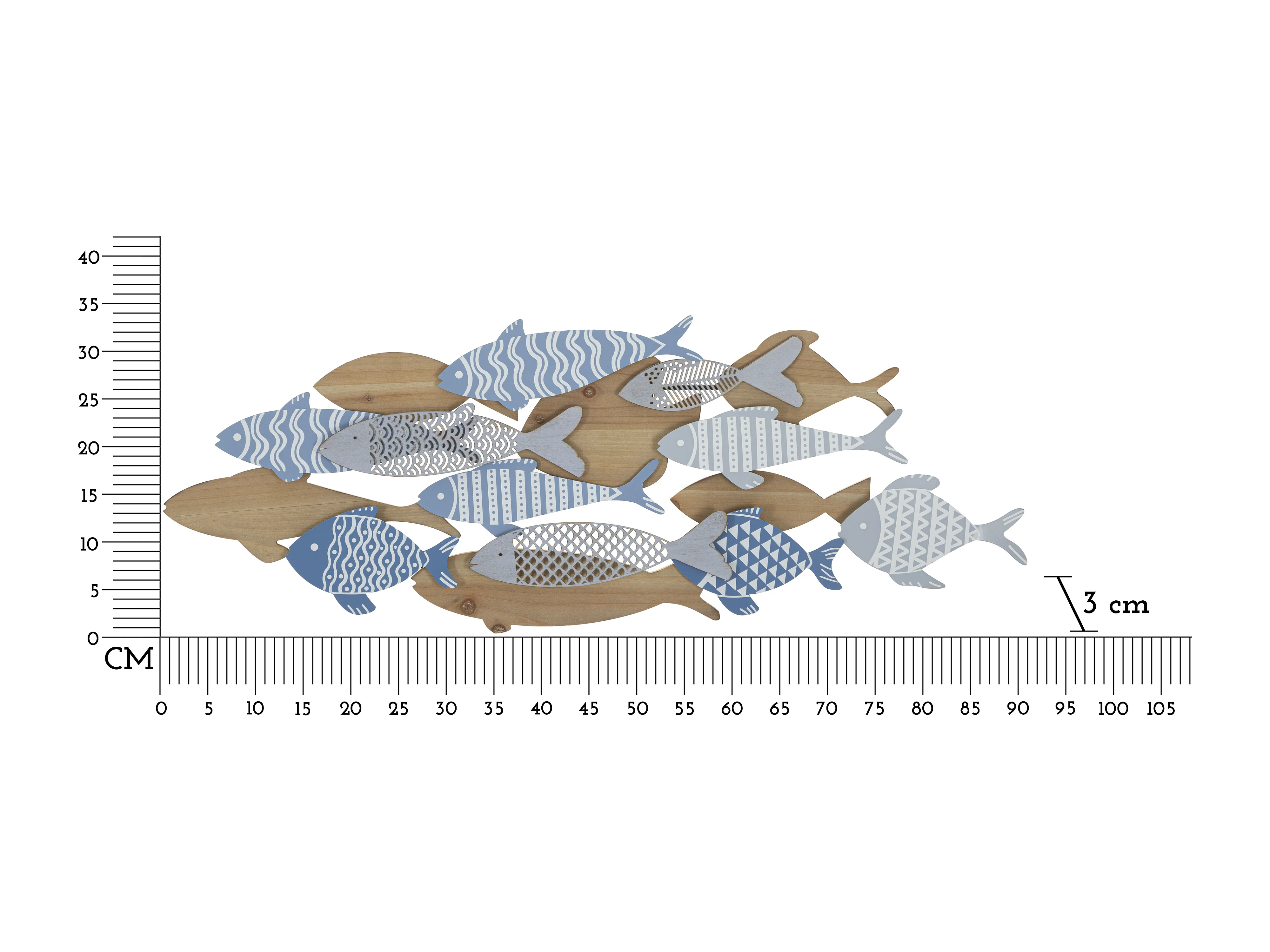 Decorazione in Metallo e Legno Pesce 10, Multicolore, 91x3x33,5 cm, Seven Design