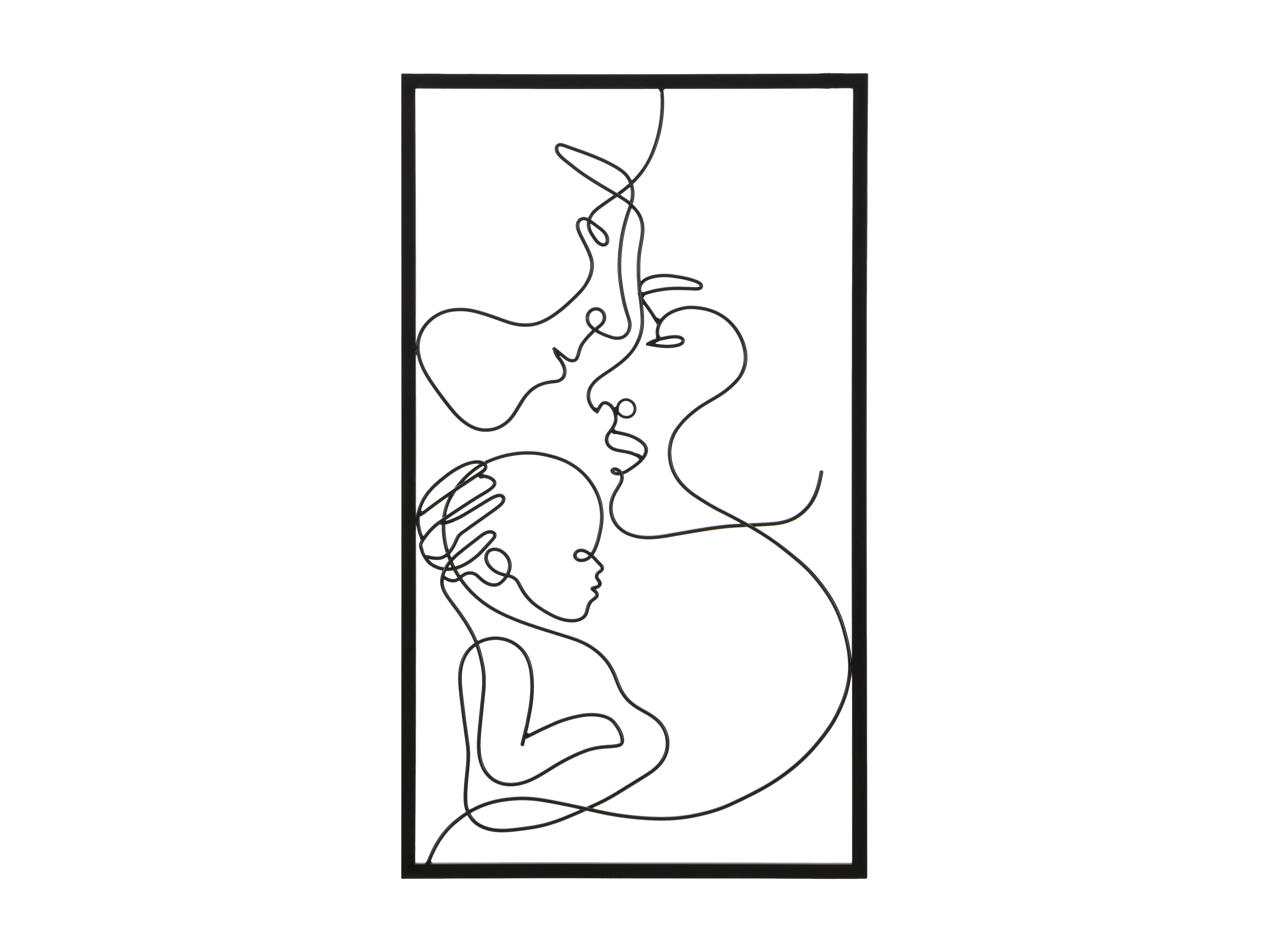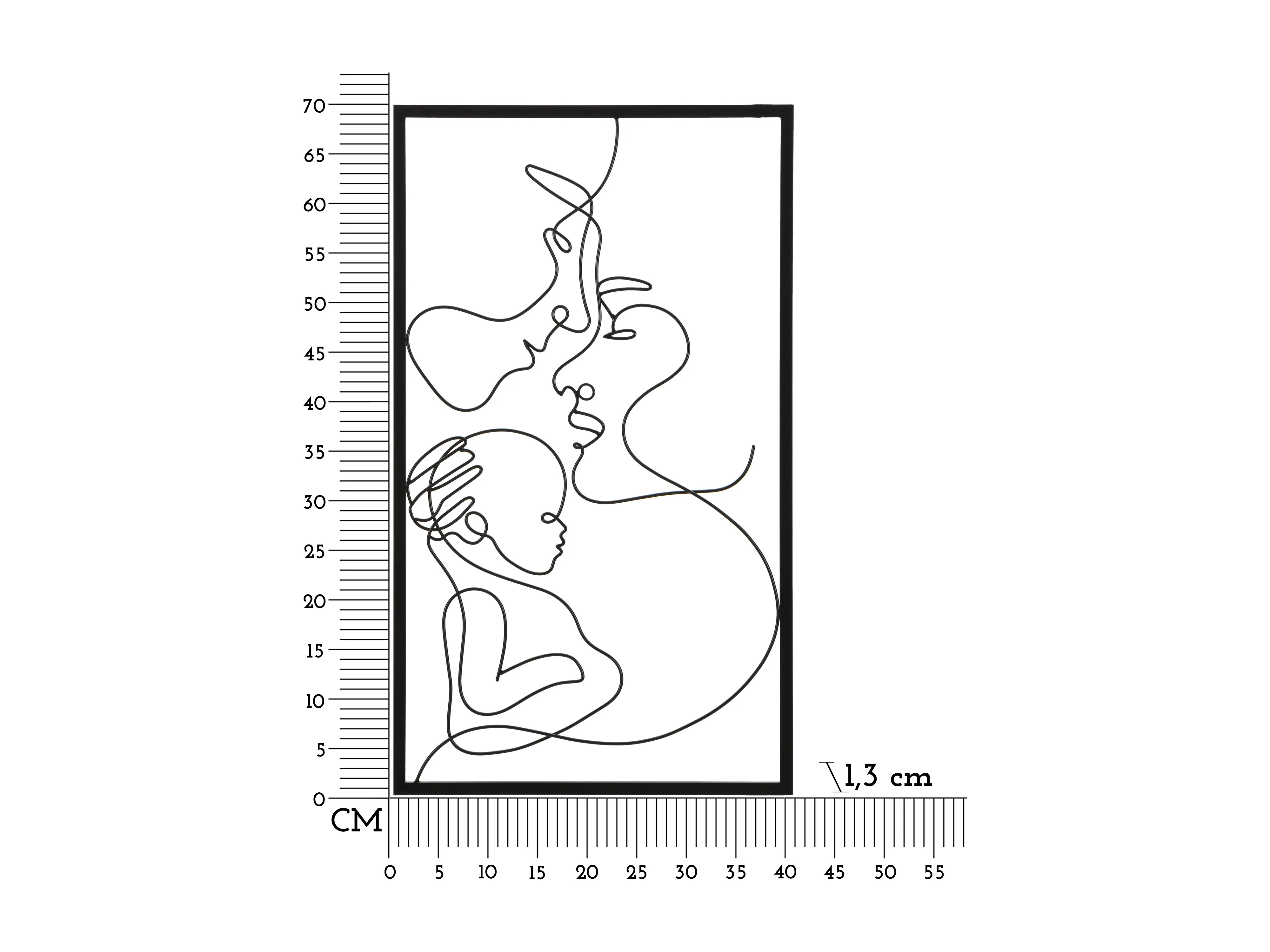 Pannello decorativo 3D in metallo nero famiglia cm 40x1,3x70
