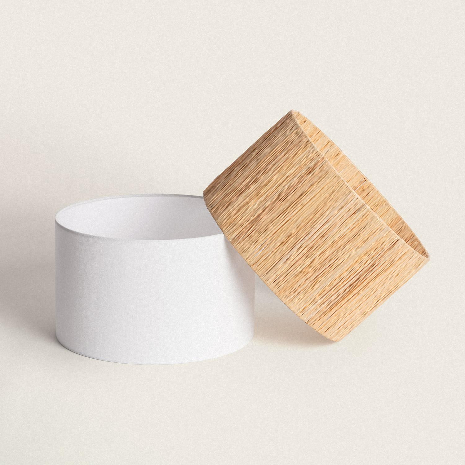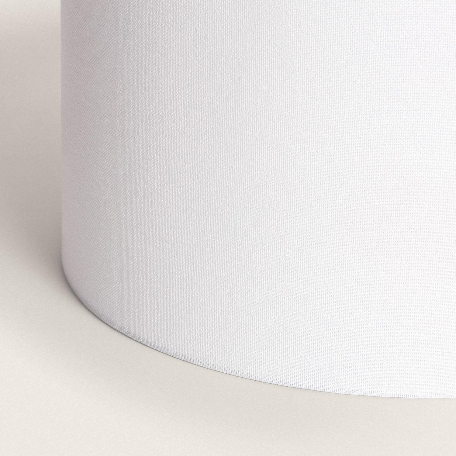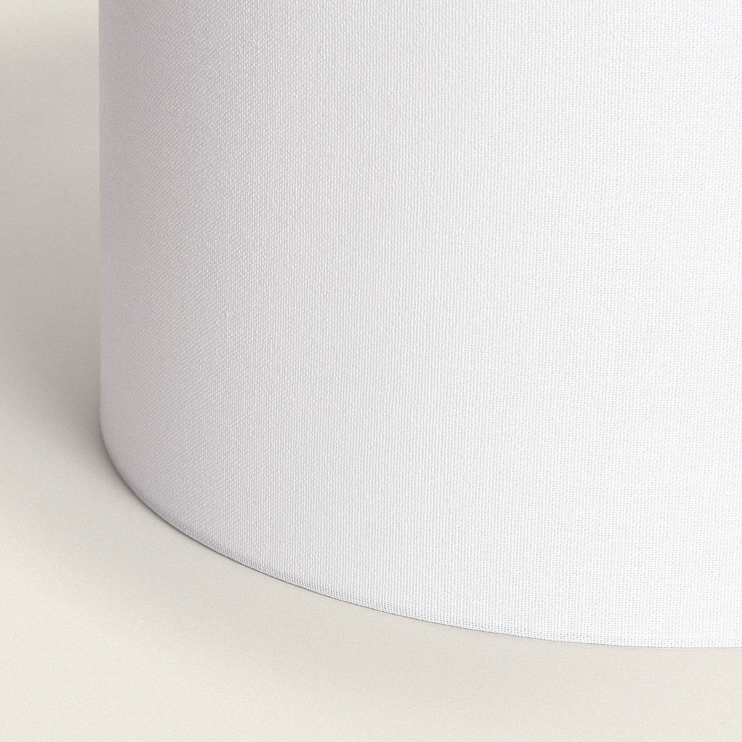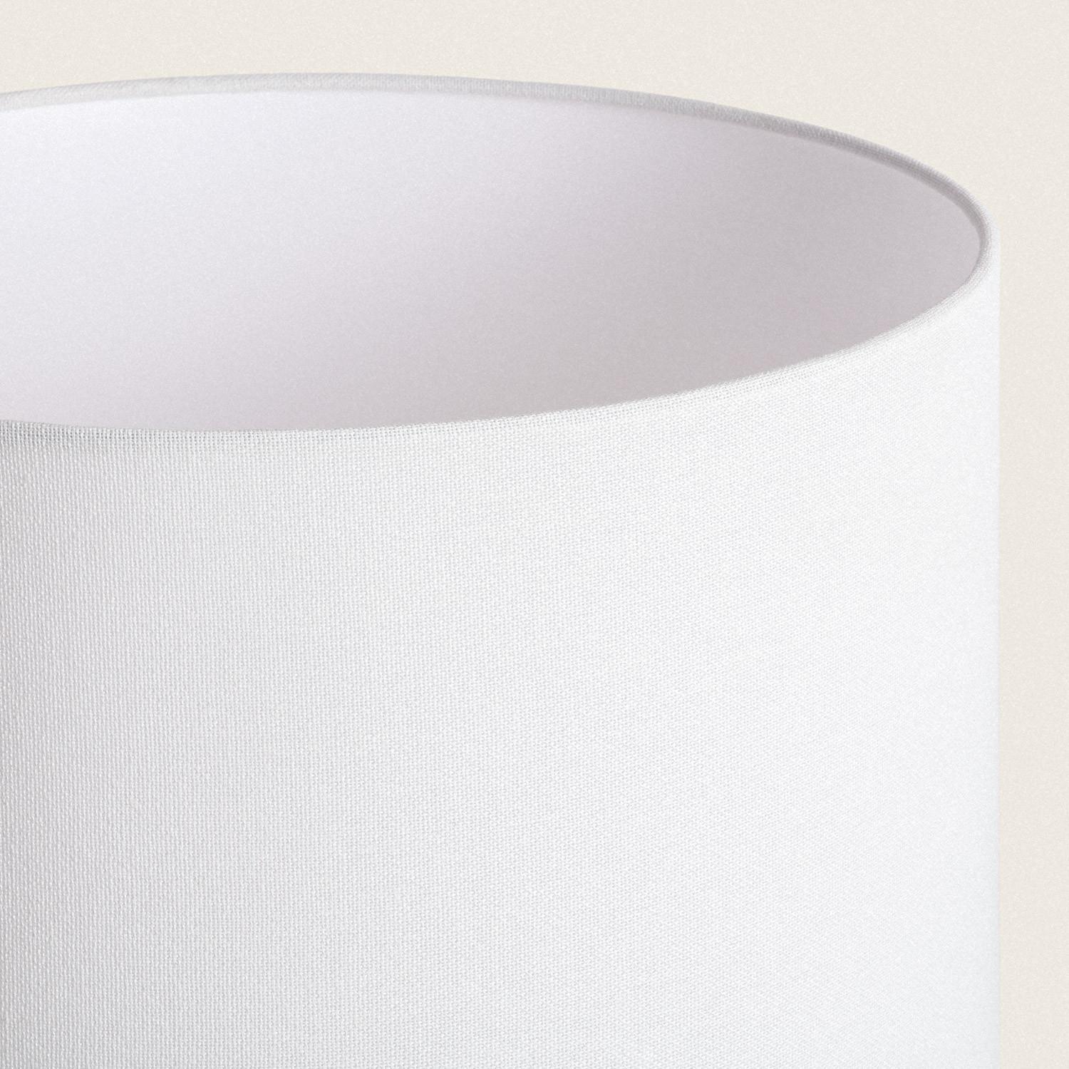 È realizzato in tessuto di cotone con rinforzo plastificato, che gli conferisce resistenza e maggiore durata. Questo rinforzo interno assicura che il paralume mantenga la sua forma anche dopo un uso prolungato, evitando deformazioni durante la manipolazione. La finitura bianca proietta una luce più neutra e diffusa, mentre la versione con effetto bambù aggiunge una sfumatura calda e naturale che esalta la sensazione di comfort.
