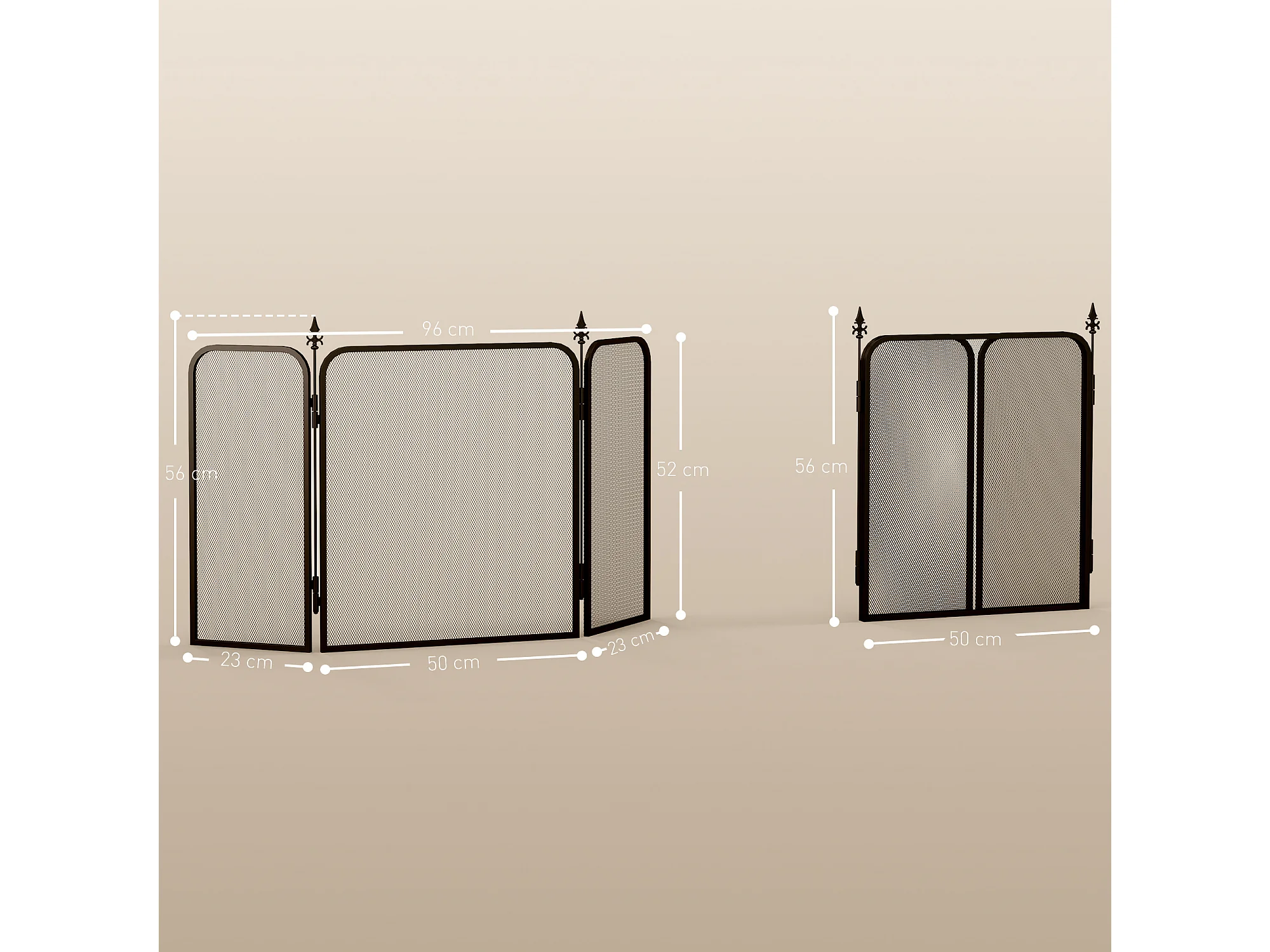 Parascintille camino pieghevole 3 pannelli in metallo nero 96x1.3x56cm