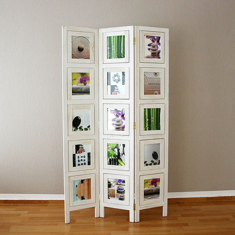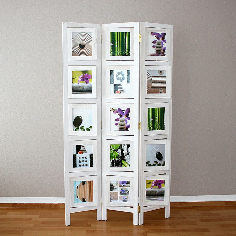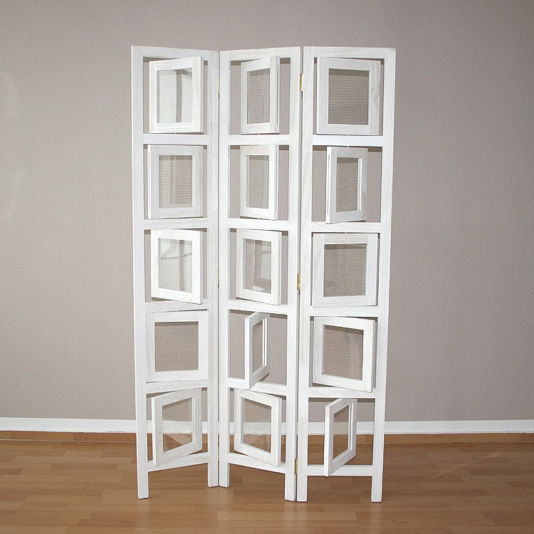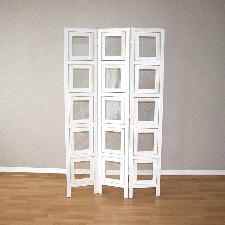 Separé 170x120x2,2 cm bianco, paravento pieghevole in legno a 3 pannelli