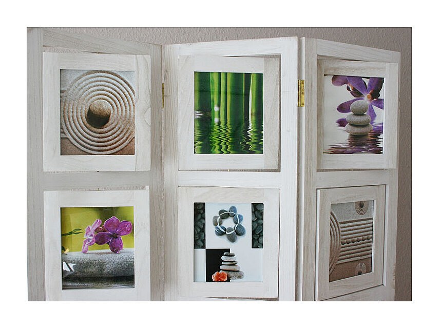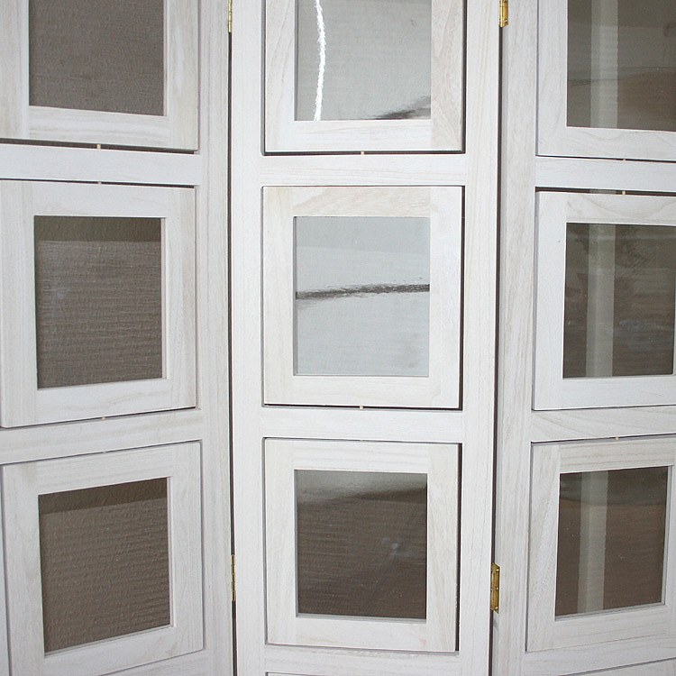 Paravento divisore separe con ripiani Yvelines T752 3 pannelli legno paulonia bianco