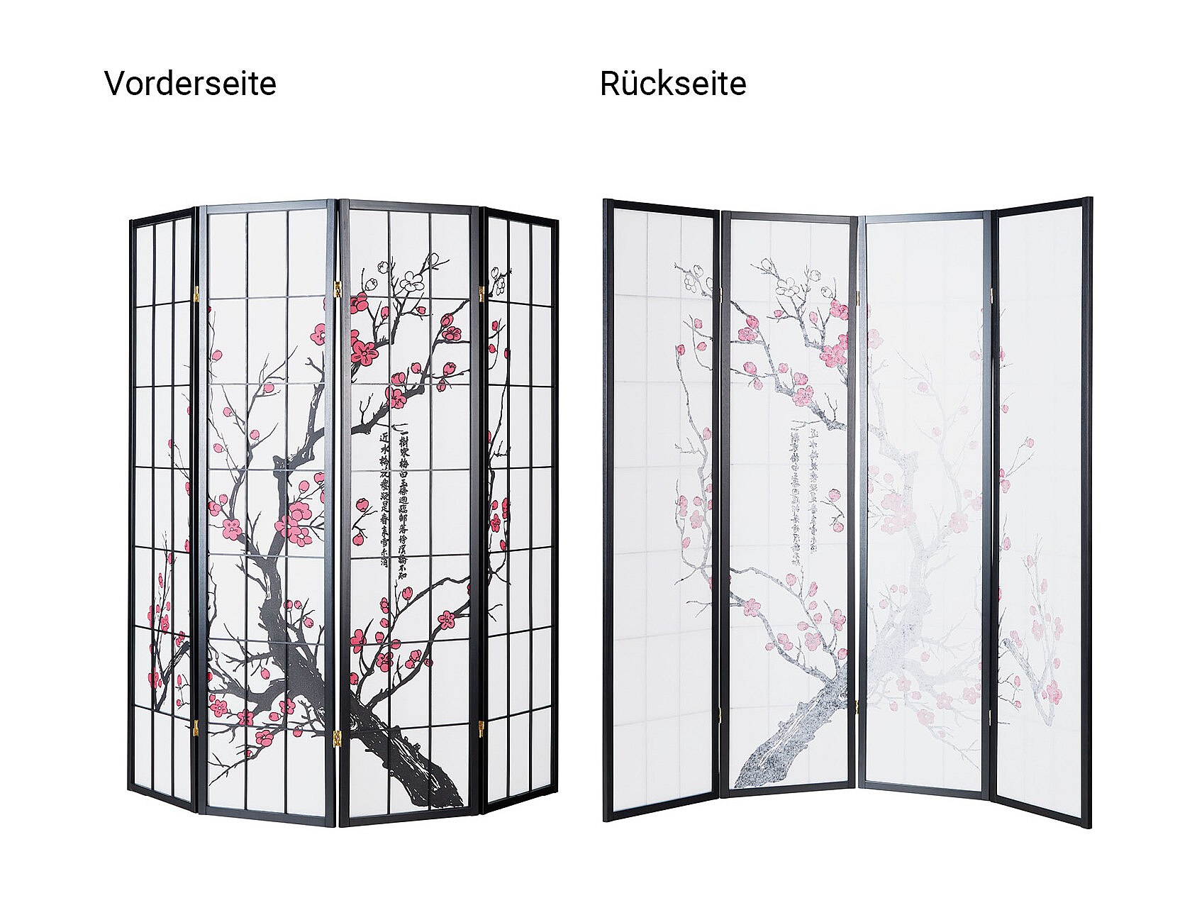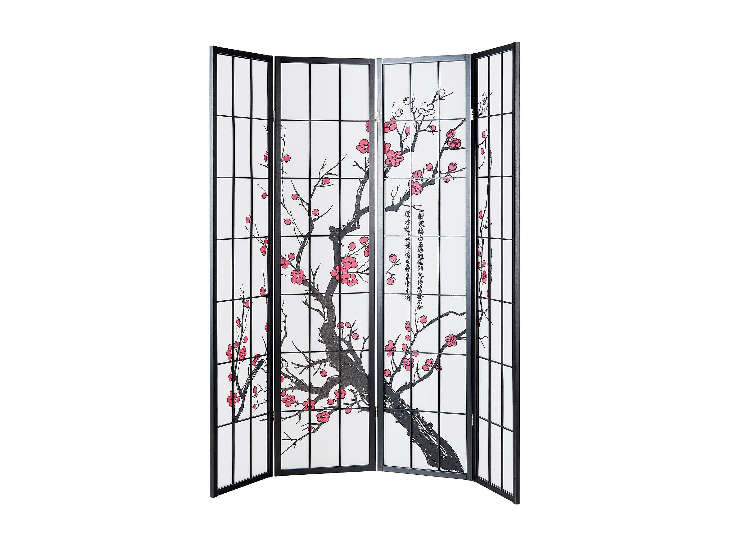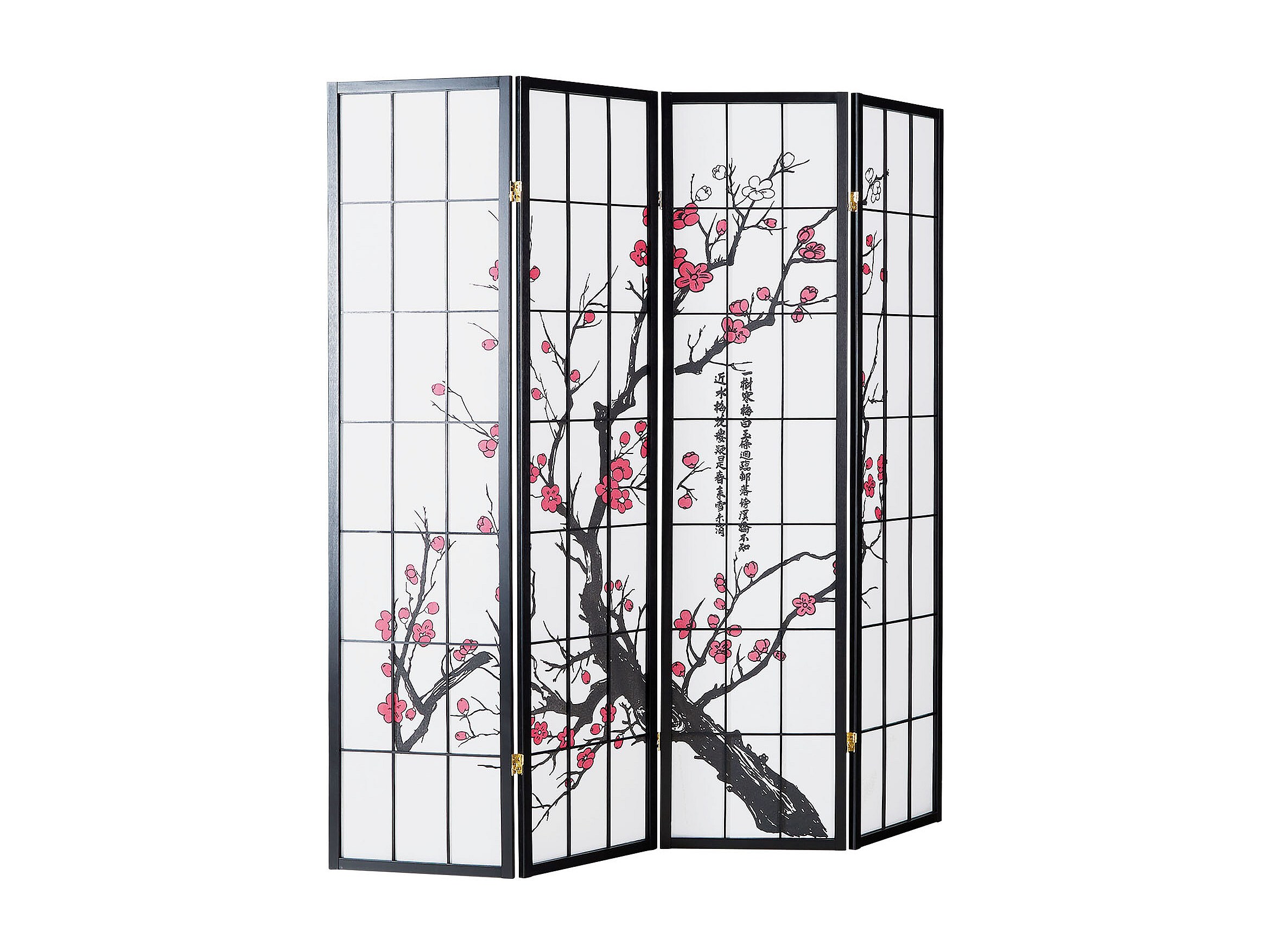 Divisorio SucceBuy, Divisorio Giapponese a 4 Pannelli con Motivo Fiori di Ciliegio, Portatile, in Legno, Ruotabile a 360°, per Separare gli Ambienti